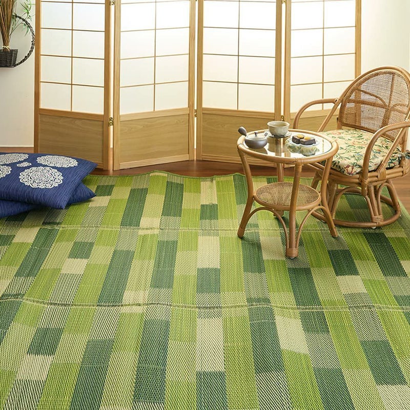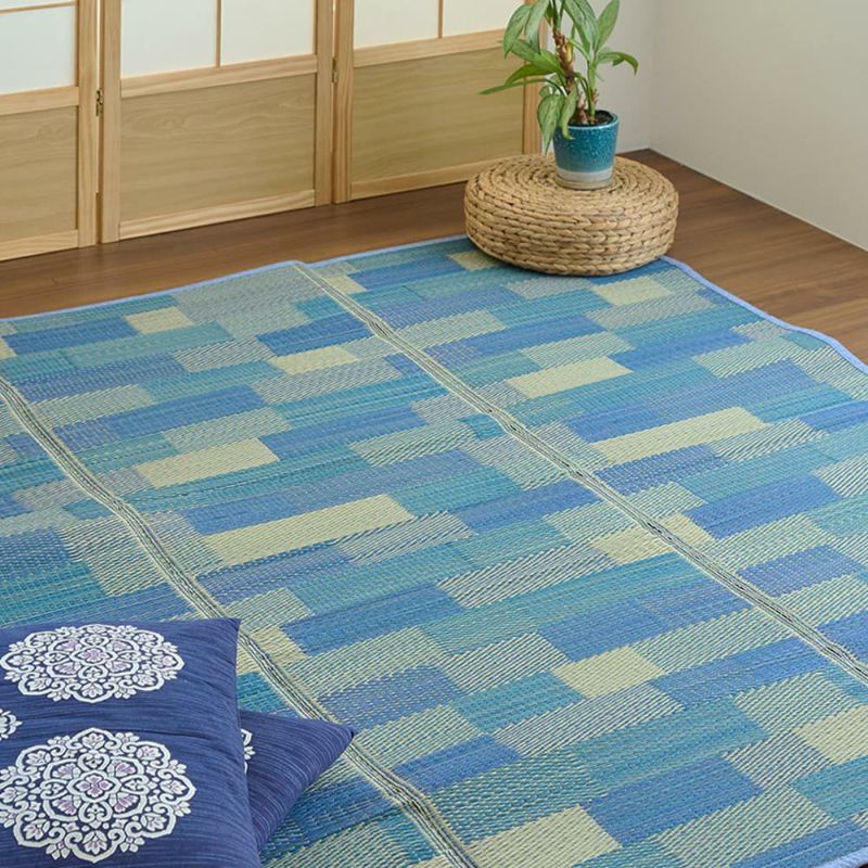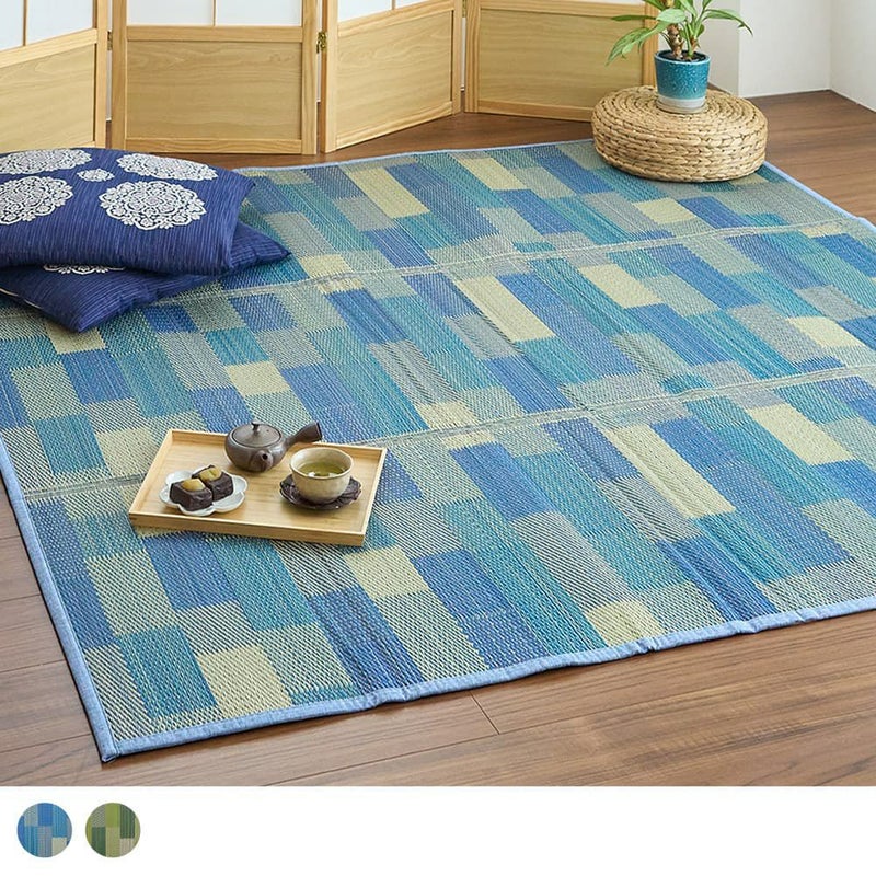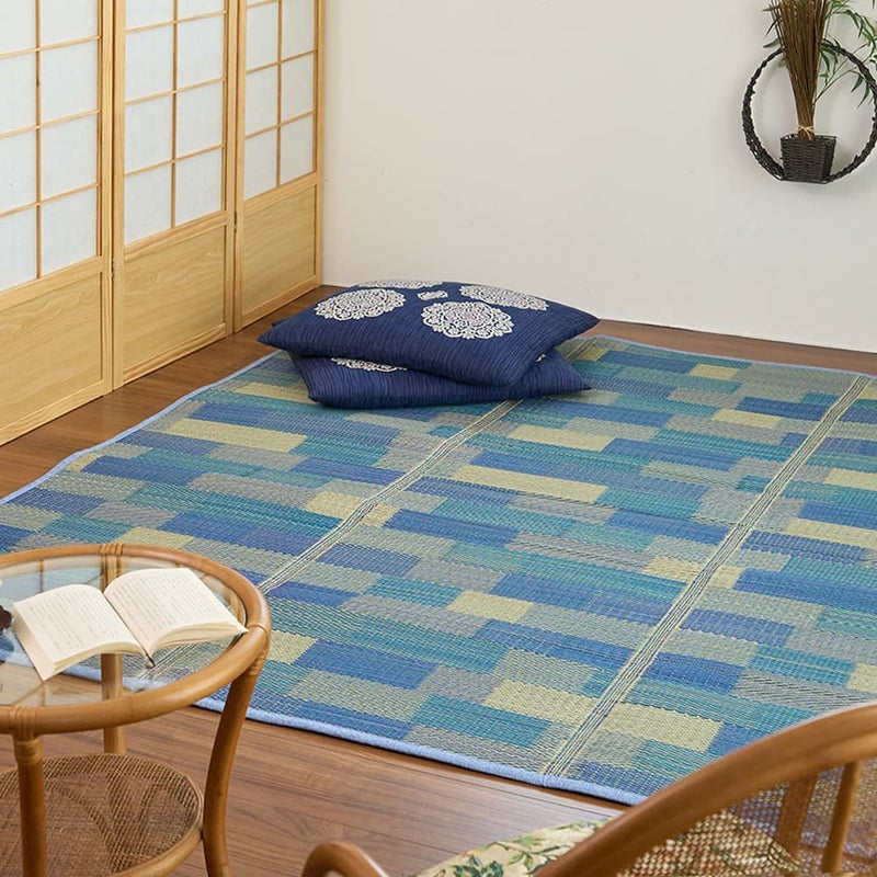 涼しげなカラーがお部屋を明るくしてくれるい草ラグ