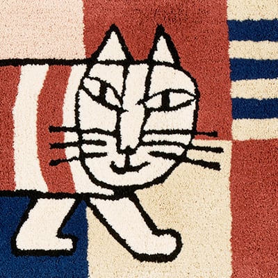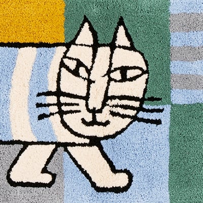 リサ・ラーソンの大人気キャラクターのマイキーが北欧タイルの上をお散歩しているようなデザインのマット♪