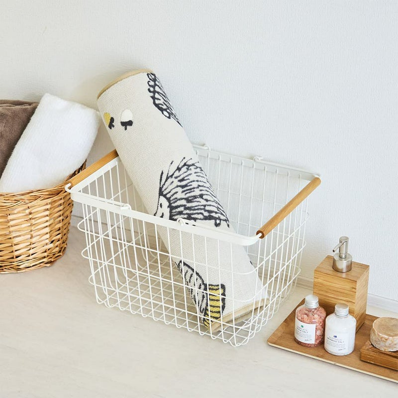 ぐるっとまるめて収納できて持ち運びもラクラク、見た目もおしゃれに片づけできます。