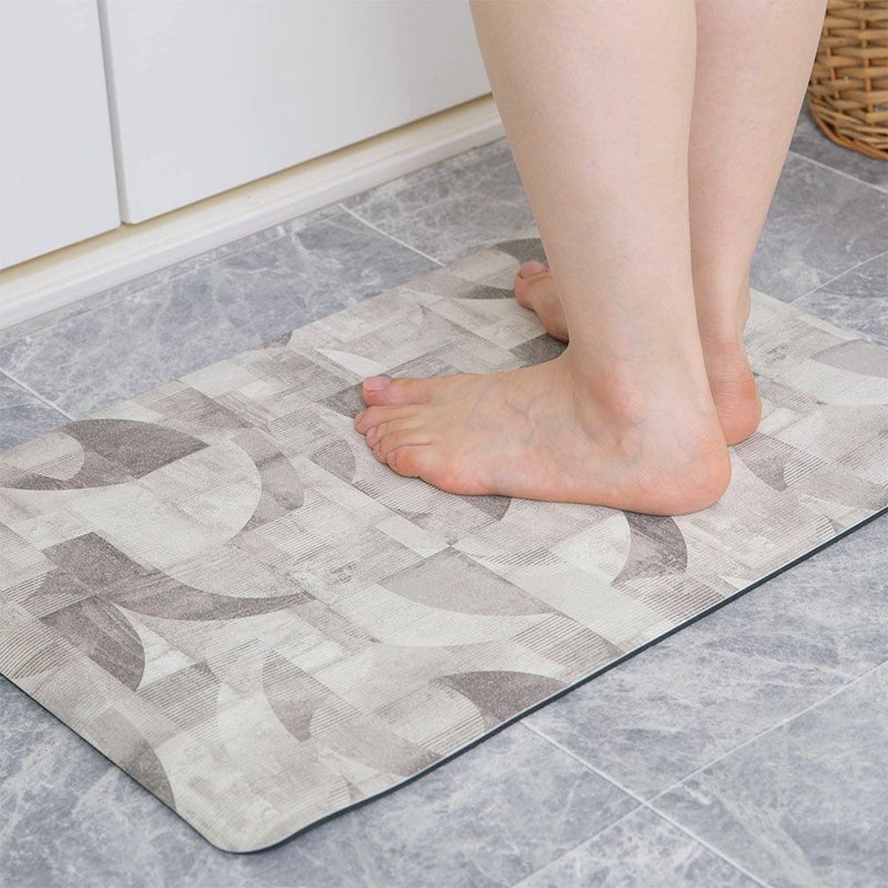 珪藻土パウダーを配合したソフトバスマットです。弾力のあるソフトな踏み心地に、珪藻土の吸水と速乾性が加わり、抜群の使いやすさを実現◎さらに、表面にはモダンテイストの幾何学模様が施されており、機能性とデザイン性を兼ね備えた良いとこ取りな一枚です。