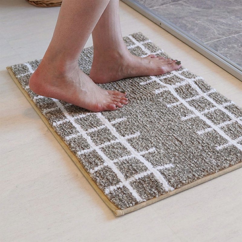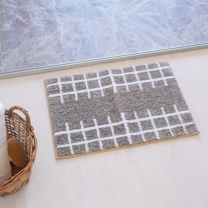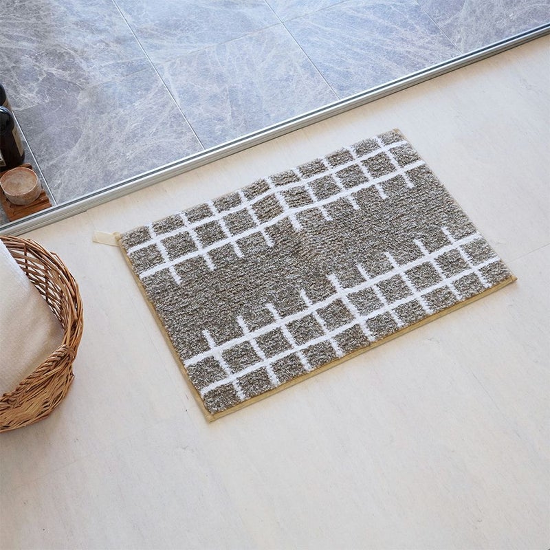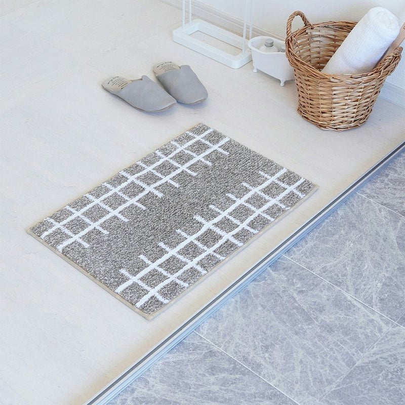 ナチュラルな色合いとシンプルデザインがおしゃれなバスマット。北欧風インテリアにも馴染む、ナチュラルなカラーと手描きのような素朴な格子柄が優しい印象です。毎日清潔に使えるので、毎日快適なバスタイムを楽しめます。