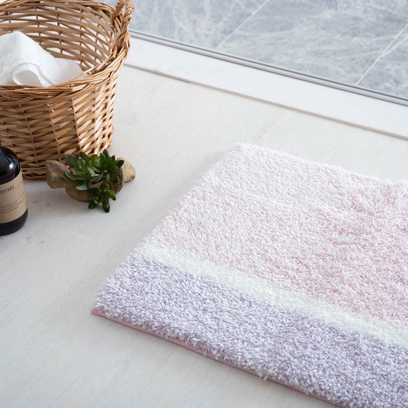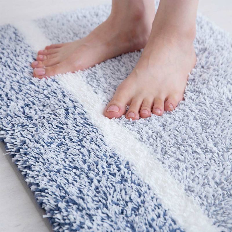 不織布スリット糸の爽やかな肌触りと、ポリエステル糸の優しい肌触りが絶妙に調和した一枚。吸水性にも優れており、お風呂上りの冷えを感じさせない、ふんわりとした踏み心地が病みつきになること間違いなし◎