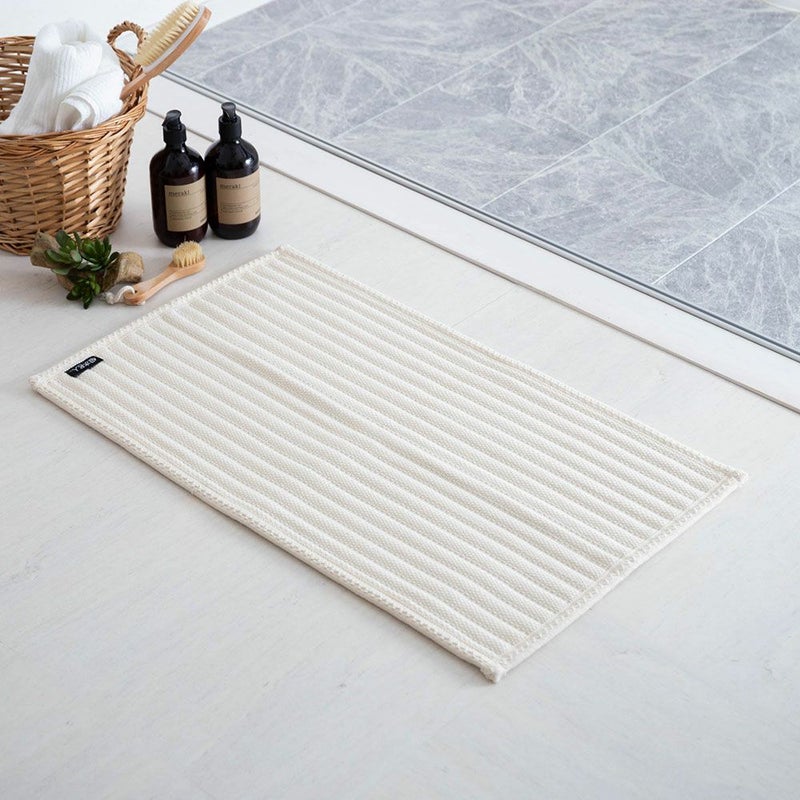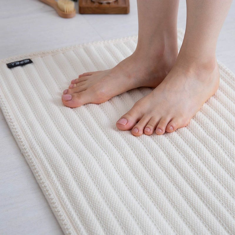 凹凸の入ったシンプルなデザインのバスマット「サラサラ2 バスマット」は、高吸水性の高いレーヨンを中材に使用することで、驚きの吸水力を実現!濡れた足も数秒でさらさらに。お風呂上がりのイヤなベタつきを解消し、快適なバスタイムをサポートします◎