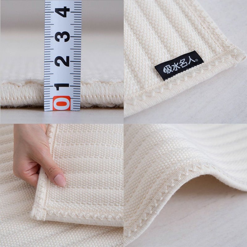一枚一枚に丁寧に作られており、使うたびに心地よさと安心感を感じていただけるバスマット。毎日使うものだからこそ、耐久性に優れ、長くご愛用いただける一枚を。