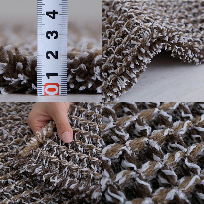 ボリューム感のある毛並みで底付き感の無い心地よい踏み心地を実現。裏面には通気性の良いメッシュ生地を使用しているので、床の湿気を気にせずお使いいただけます。