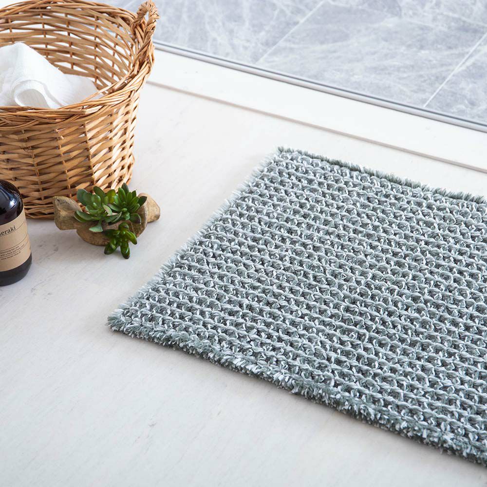 足を踏み入れた瞬間の「ふわシャリ」感が癖になるバスマット。バスルームに敷けば、お風呂上りの冷たさを感じることなく、足裏をやさしく包み込んでくれます。「シュガーワッフル バスマット」が心地よい時間をお届けします。