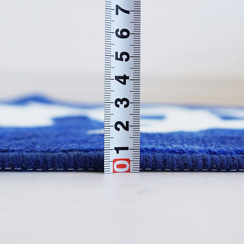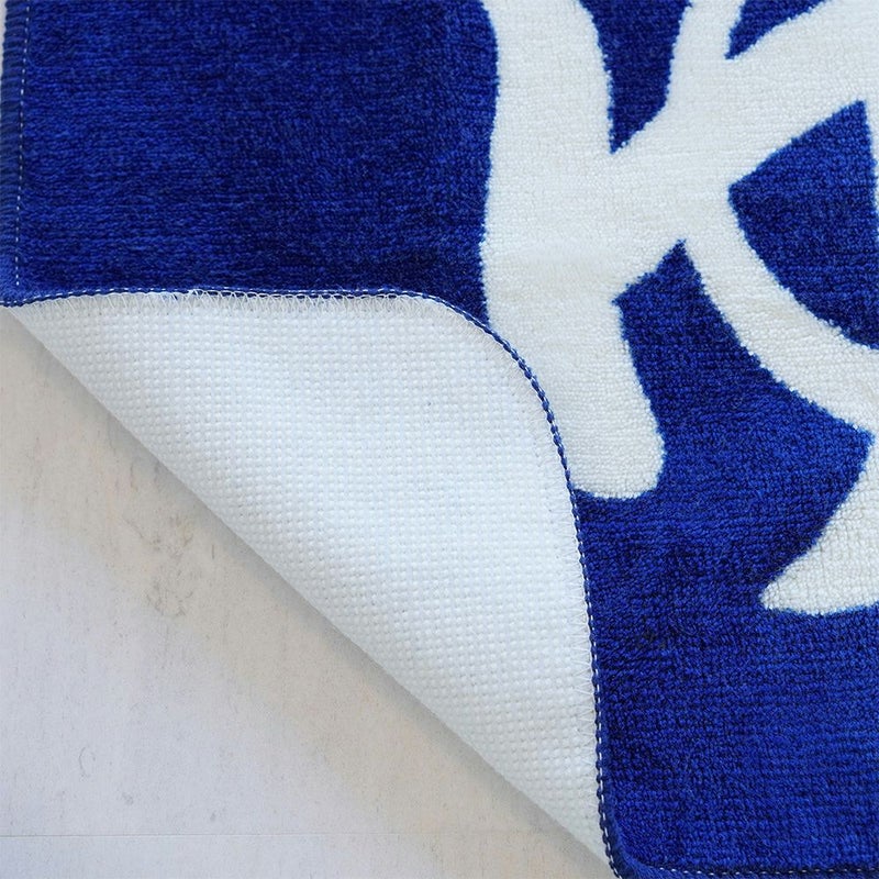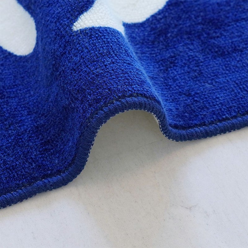 ベースの濃いブルーに白で「ゆ」と描かれた日本人にはおなじみの温泉マーク。いつものバスルームに敷くだけで、たちまち温泉にきているような気分が味わえます。