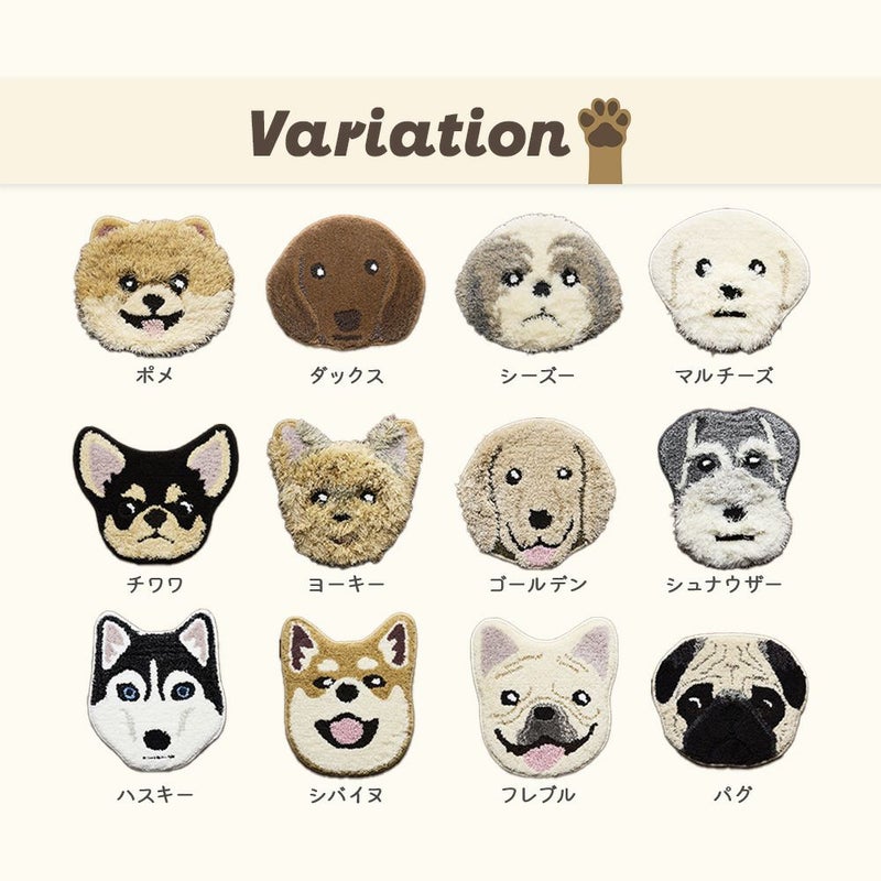 幸せそうな笑顔、しまい忘れた舌、訴えかけるようなうるうるの目。そのワンちゃんの一番かわいいポイントをデザインしました。犬好きさんにはたまらない、愛するペットそっくりのマットと一緒に生活しませんか?
