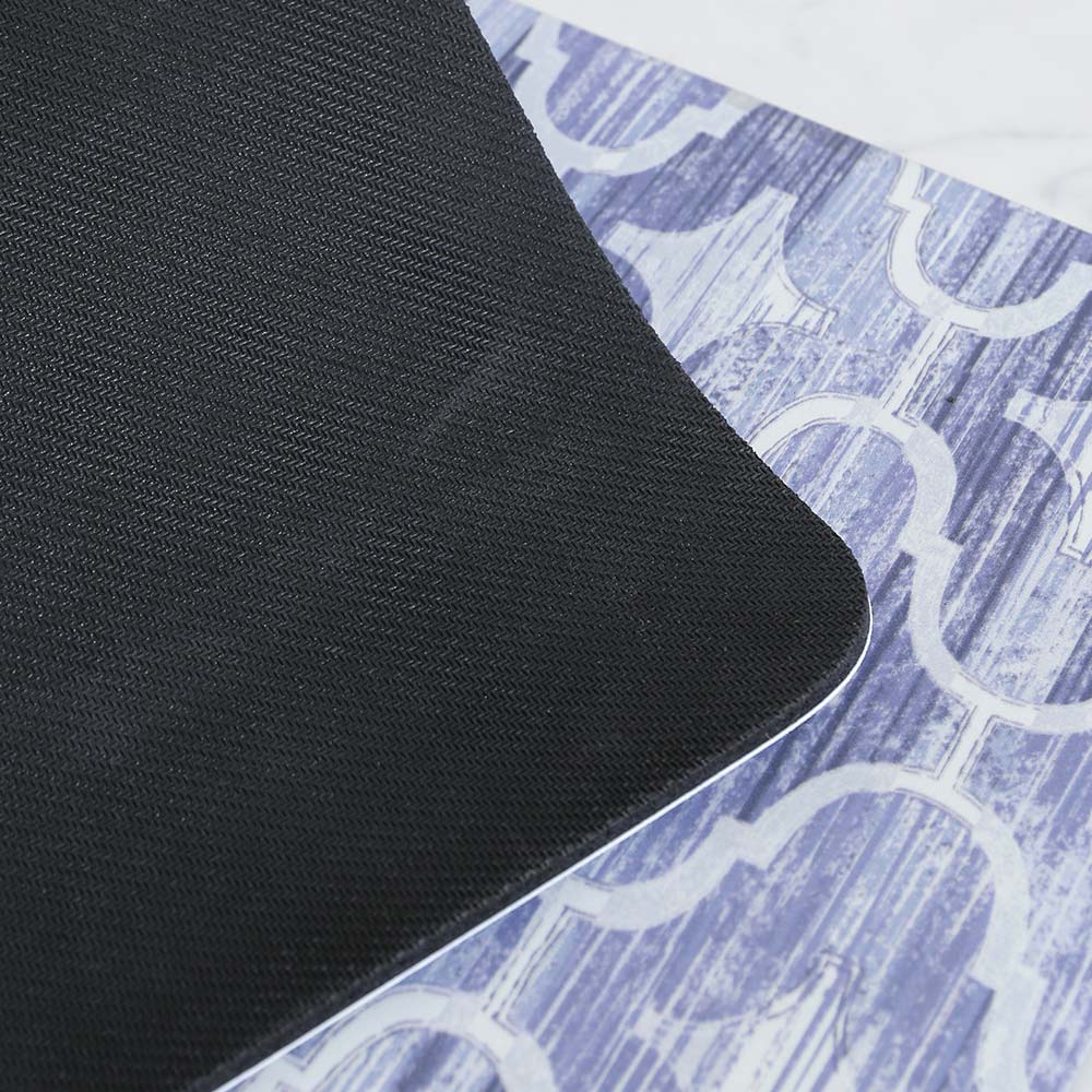裏面は、天然ゴムにエンボス加工を施しているので滑りにくく、床も傷つきません。お年寄りやお子様にも安心です。