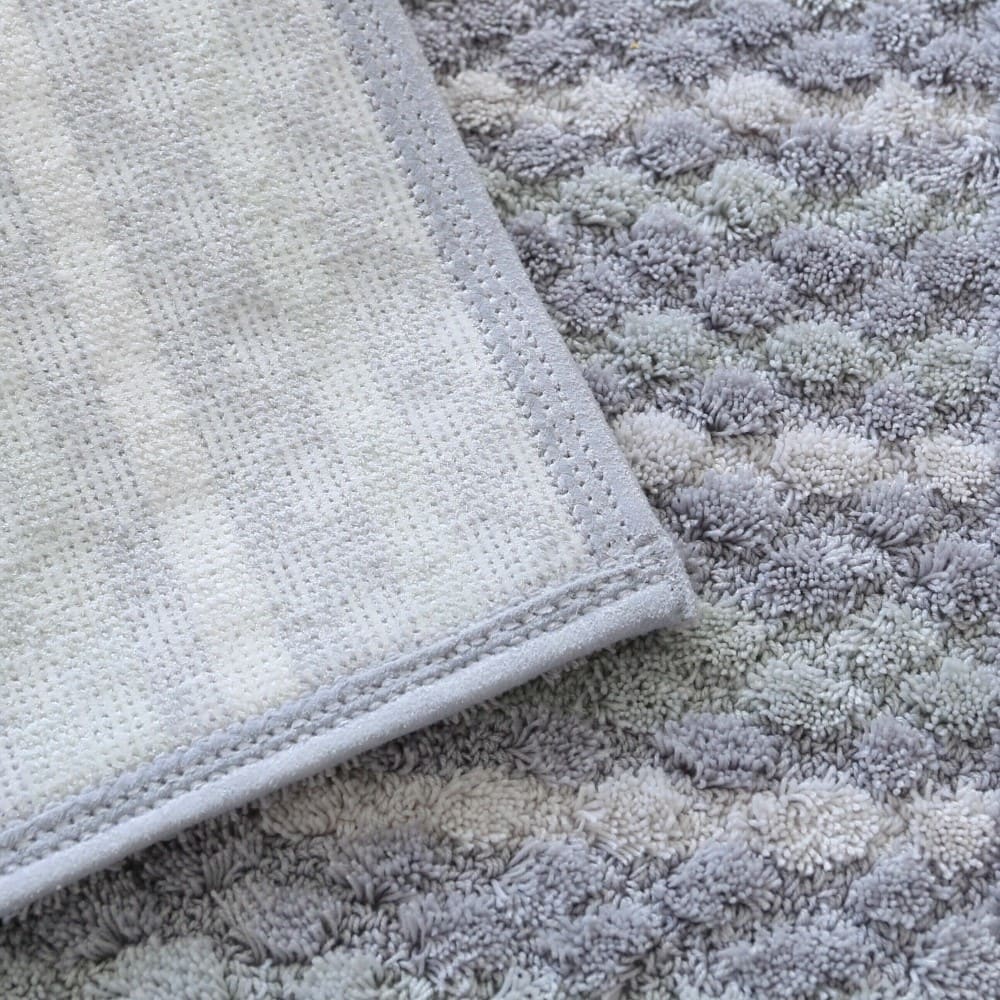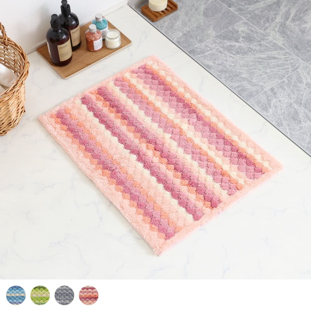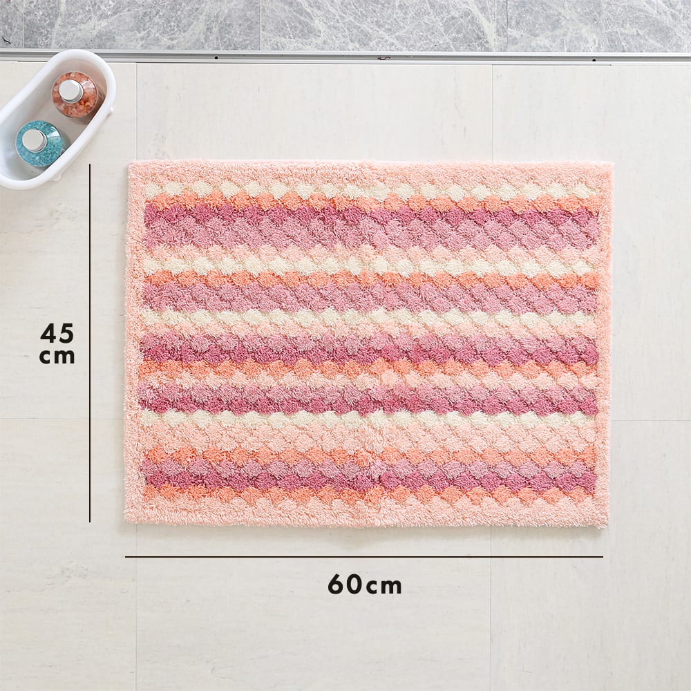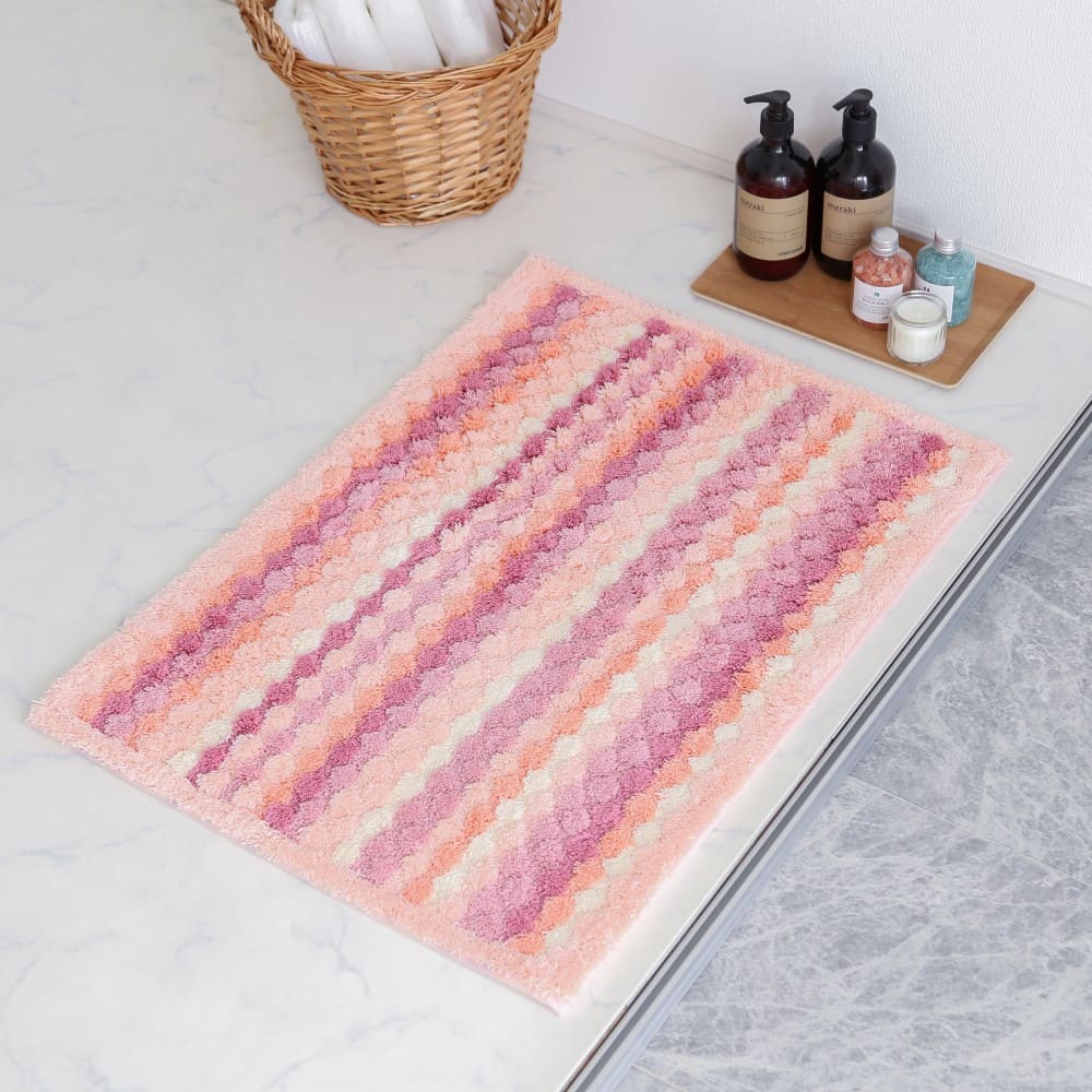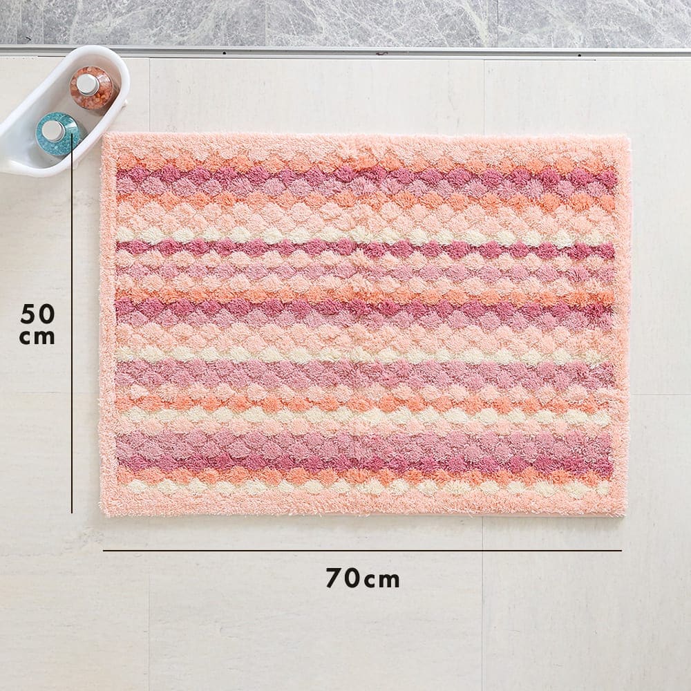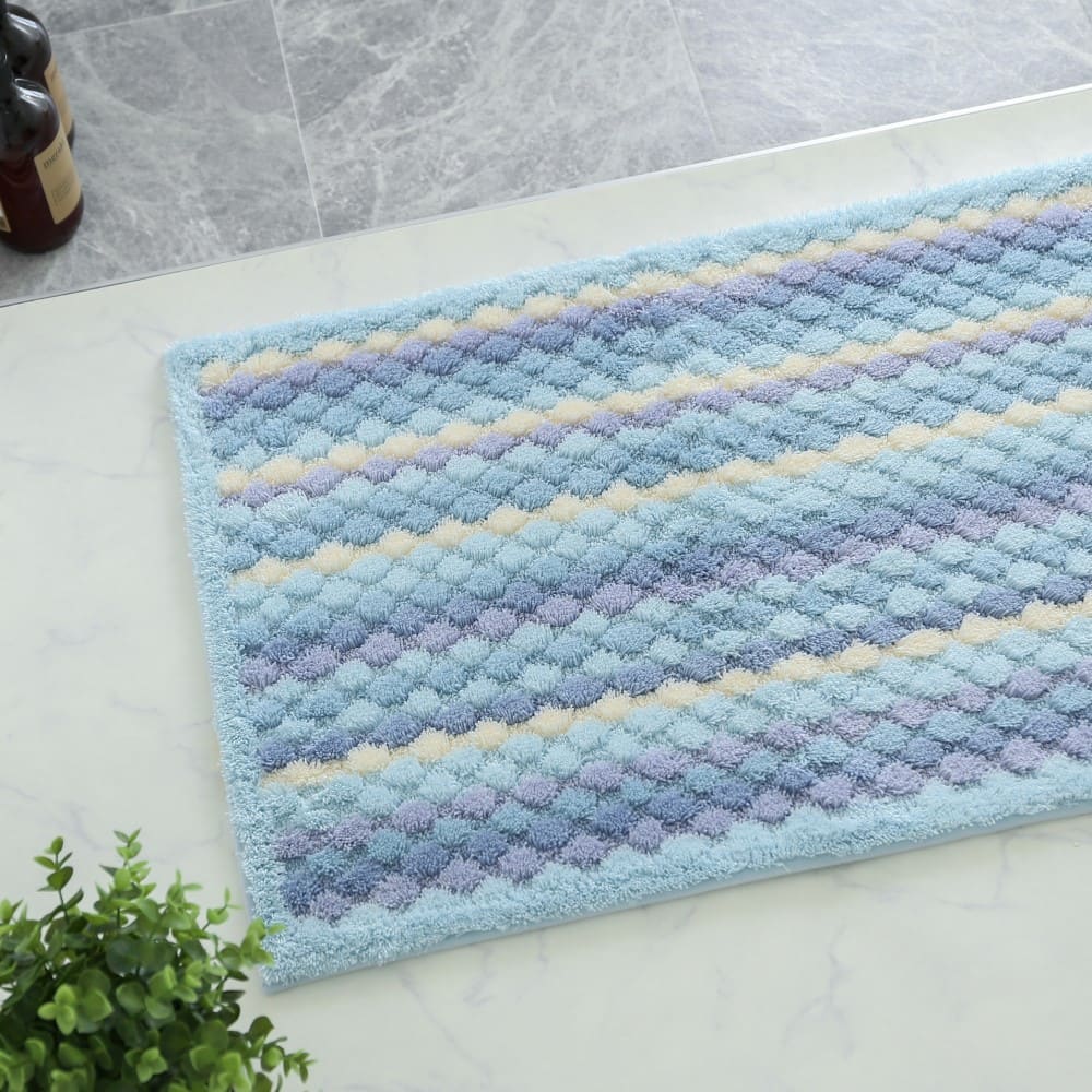マットが足裏全体に密着するよう工夫された、ぽこぽことしたしたデザイン。編み物のようなボーダーは、どこか手作り感を感じる、あたたかいデザインです。