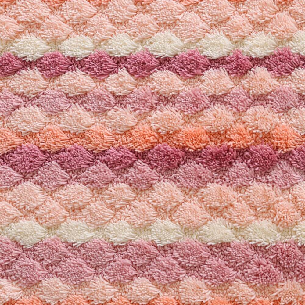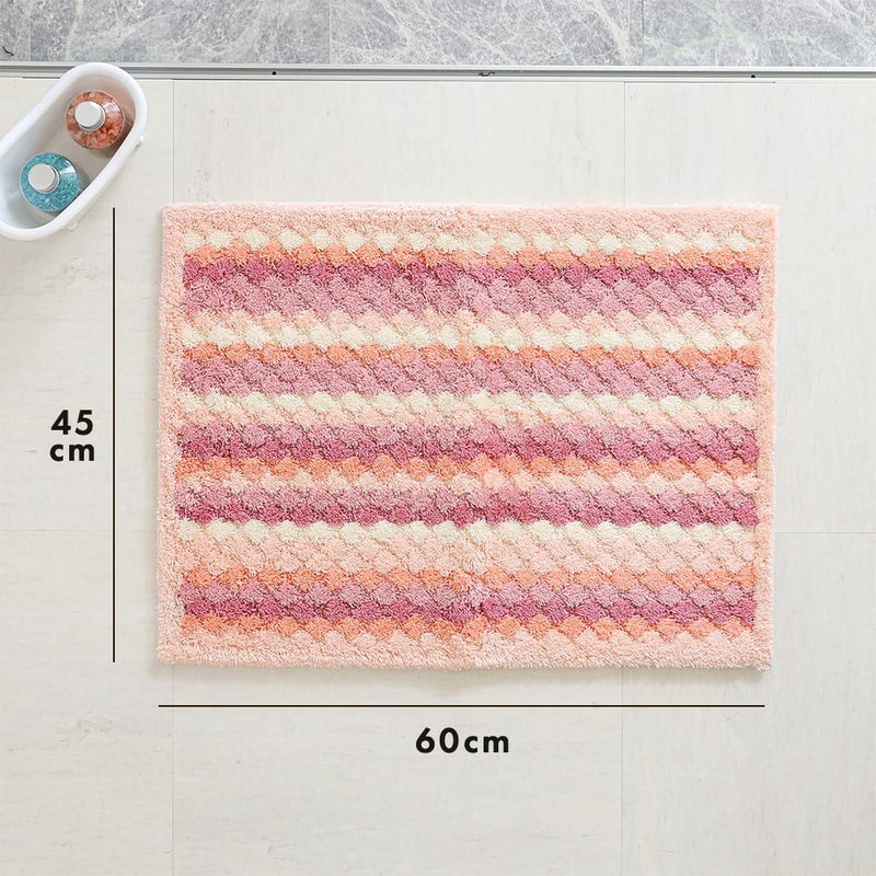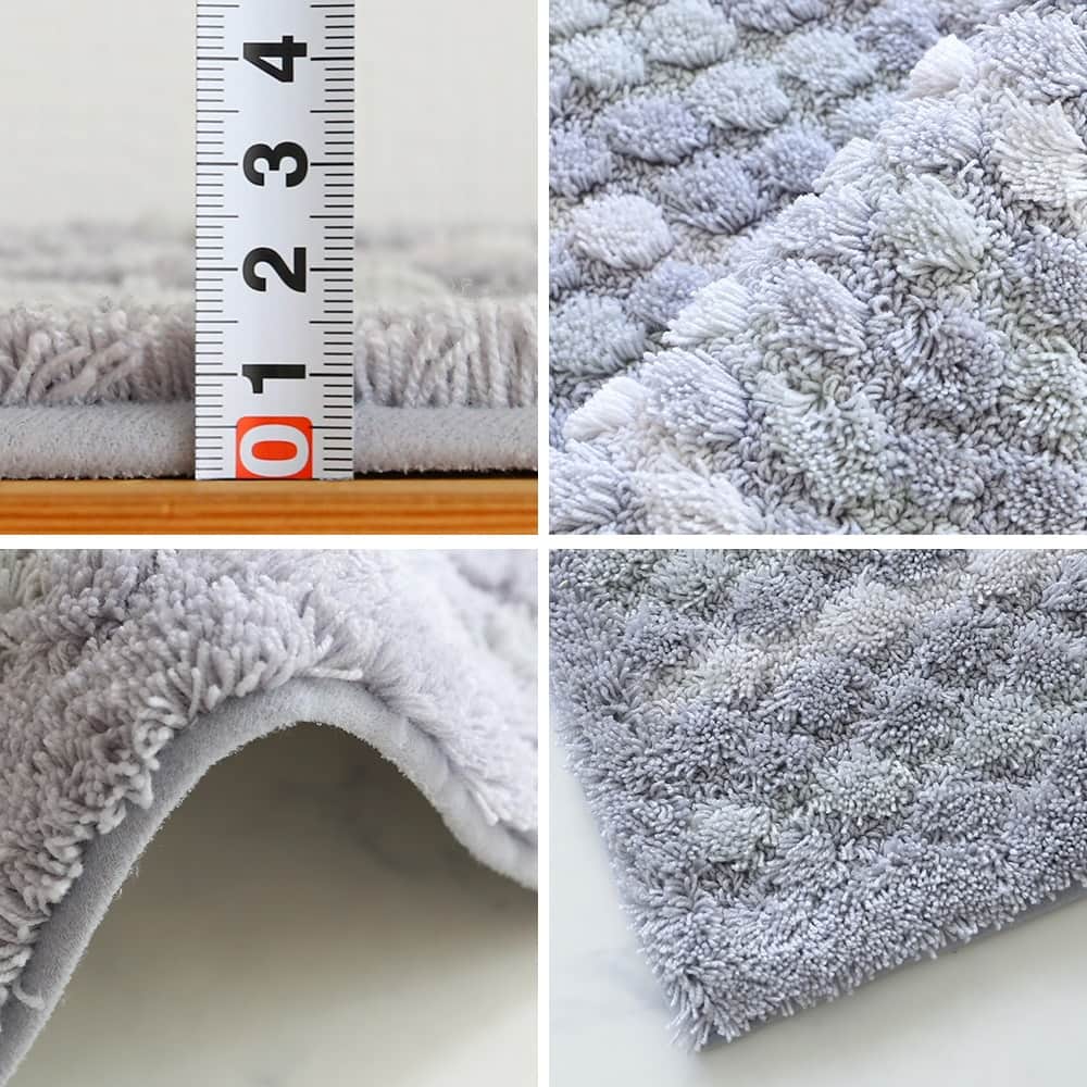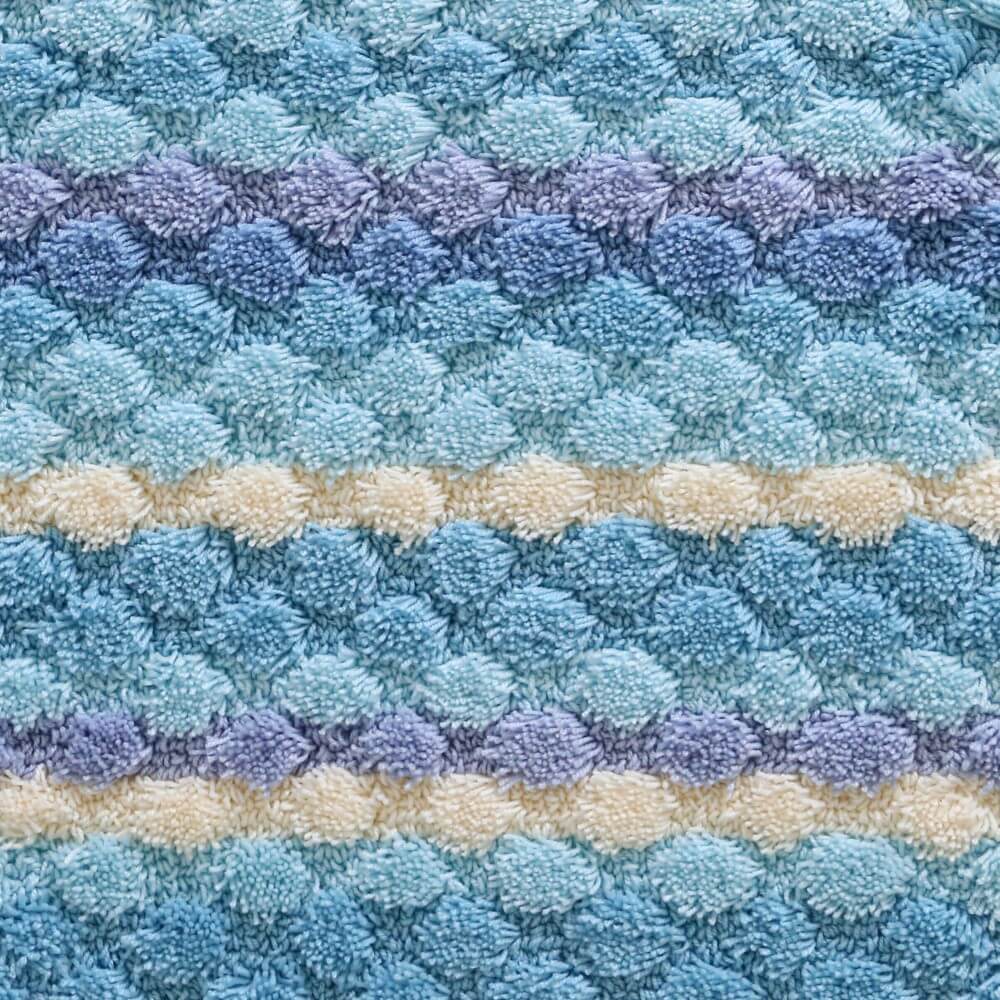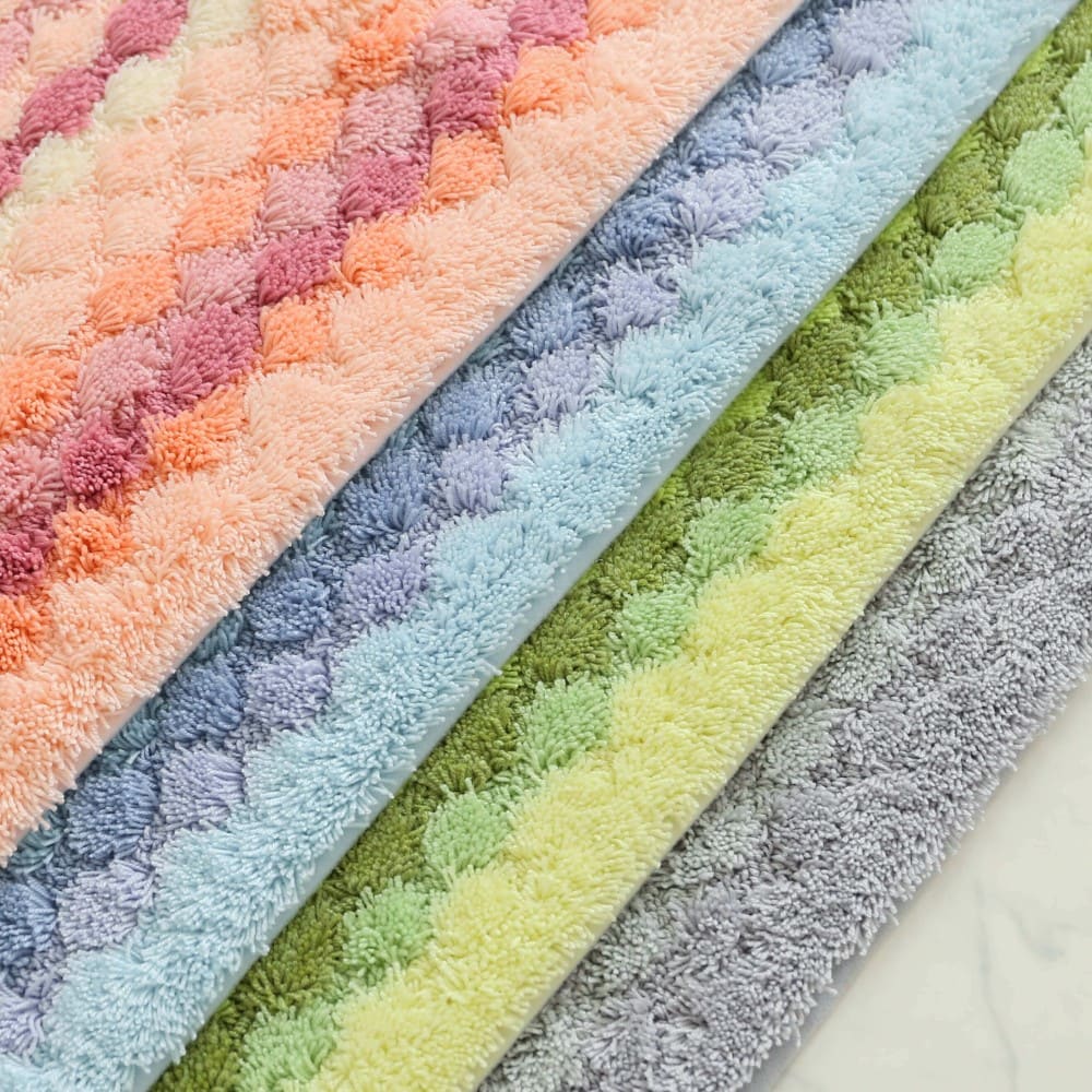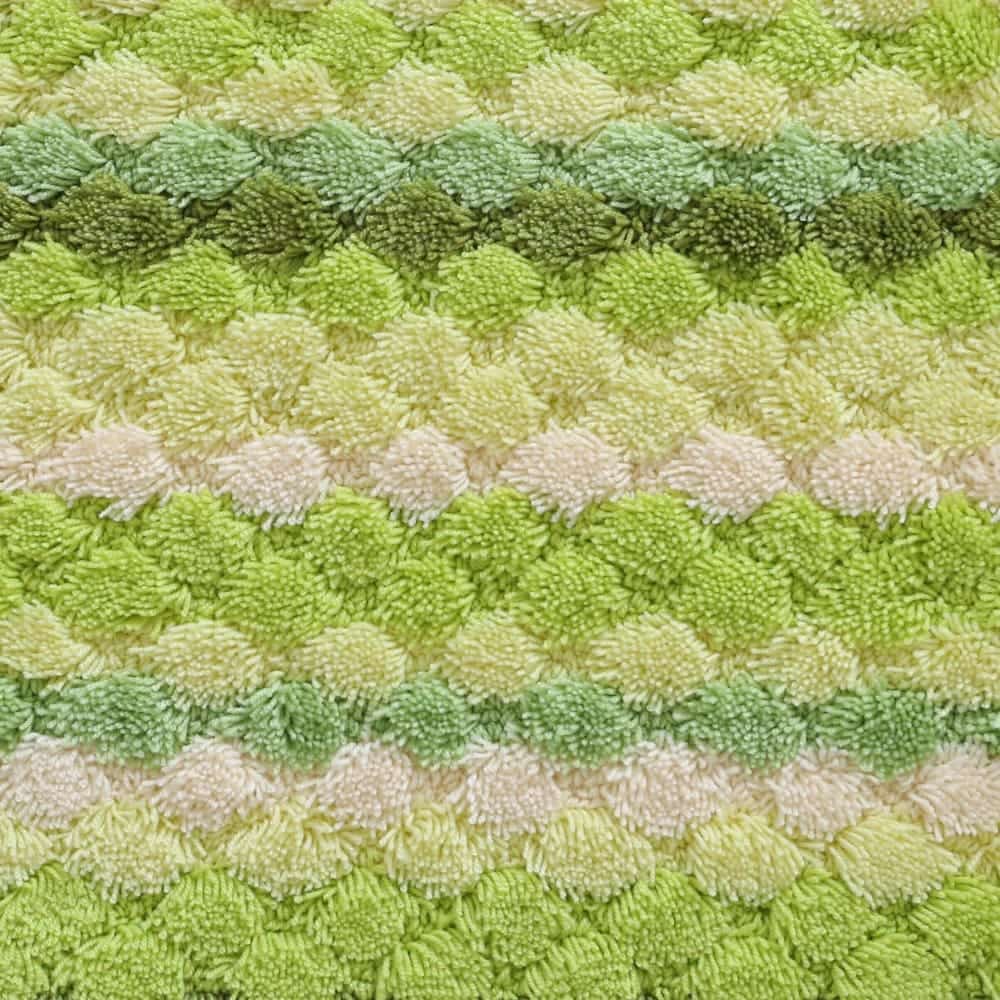 マットが足裏全体に密着するよう工夫された、ぽこぽことしたしたデザイン。編み物のようなボーダーは、どこか手作り感を感じる、あたたかいデザインです。