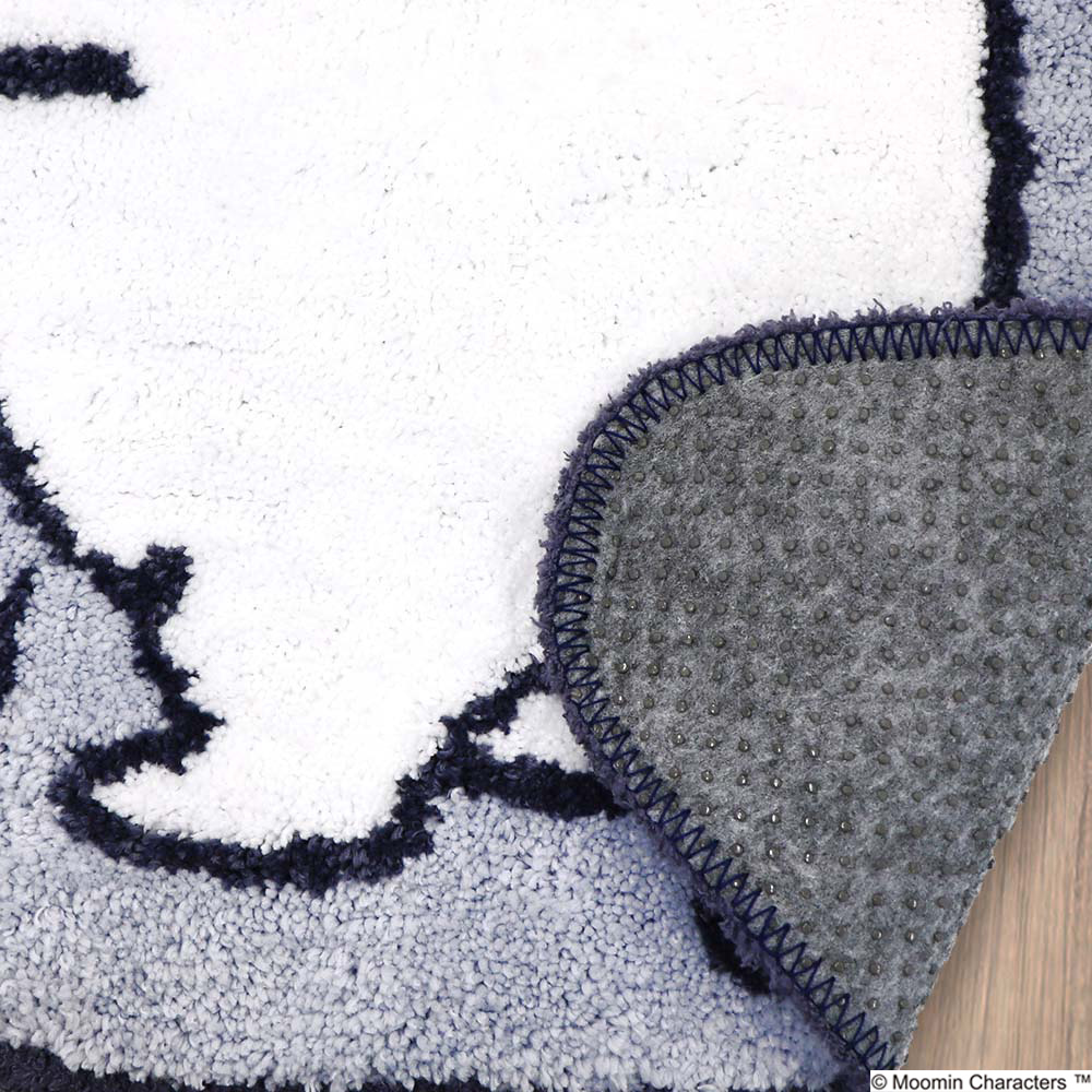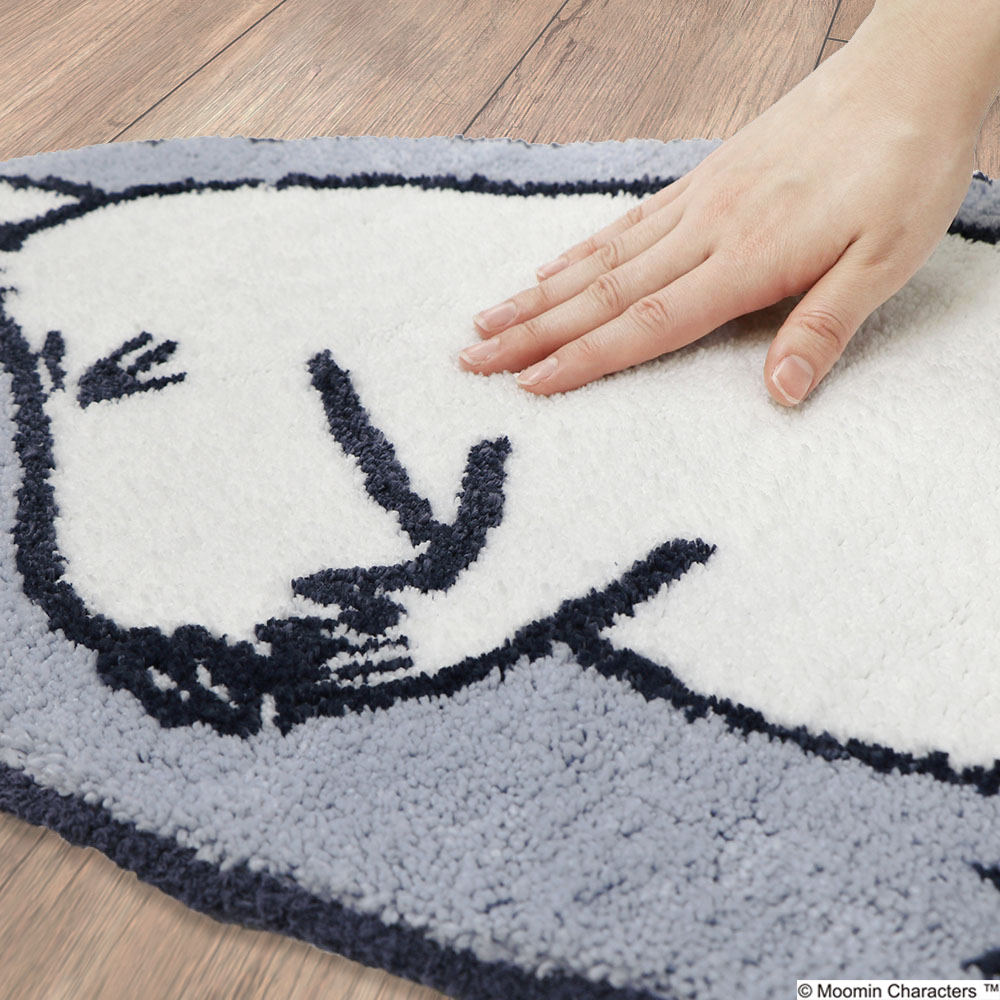 手で口を抑えて笑っているなんともかわいらしいムーミン。おしゃれでインテリアにも取り入れやすい「ムーミン」シリーズのバスマットです。