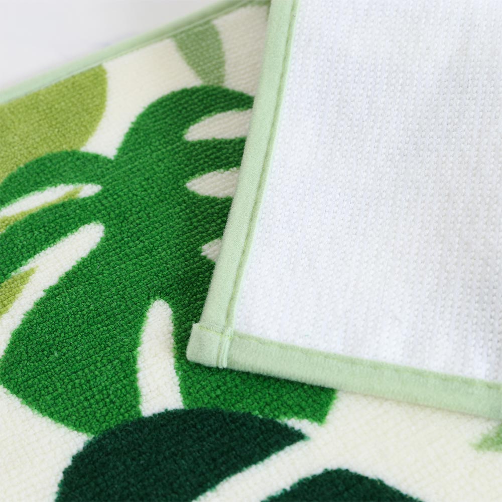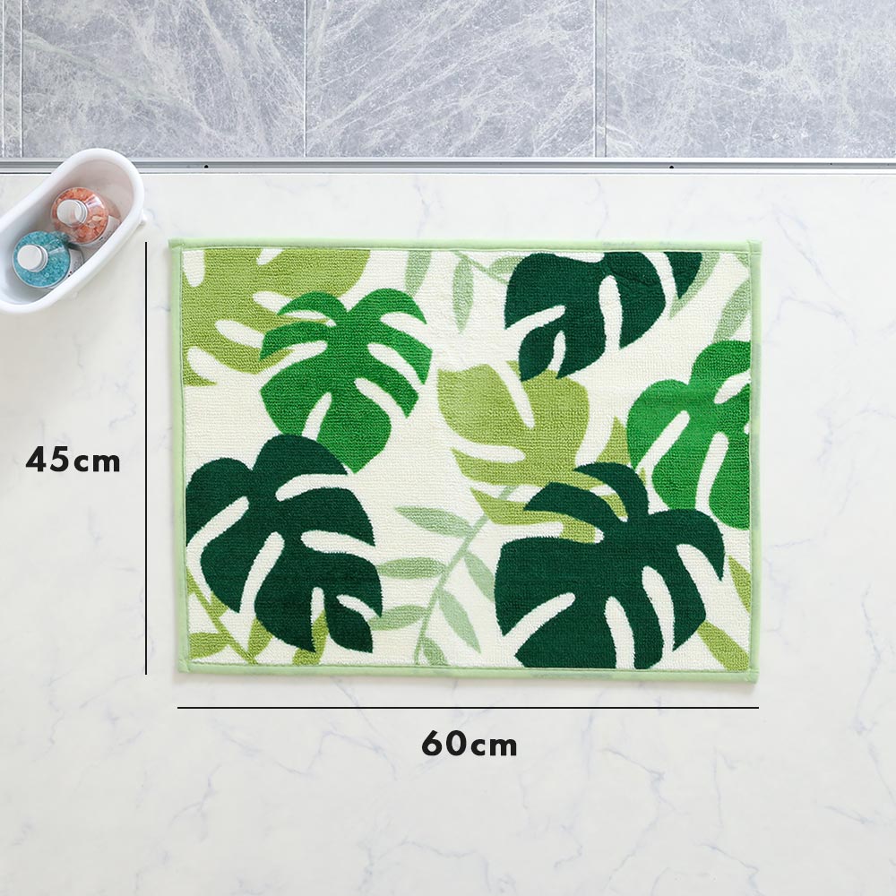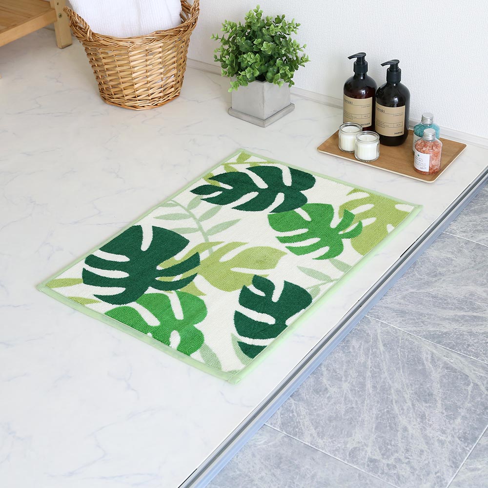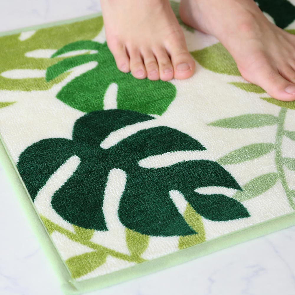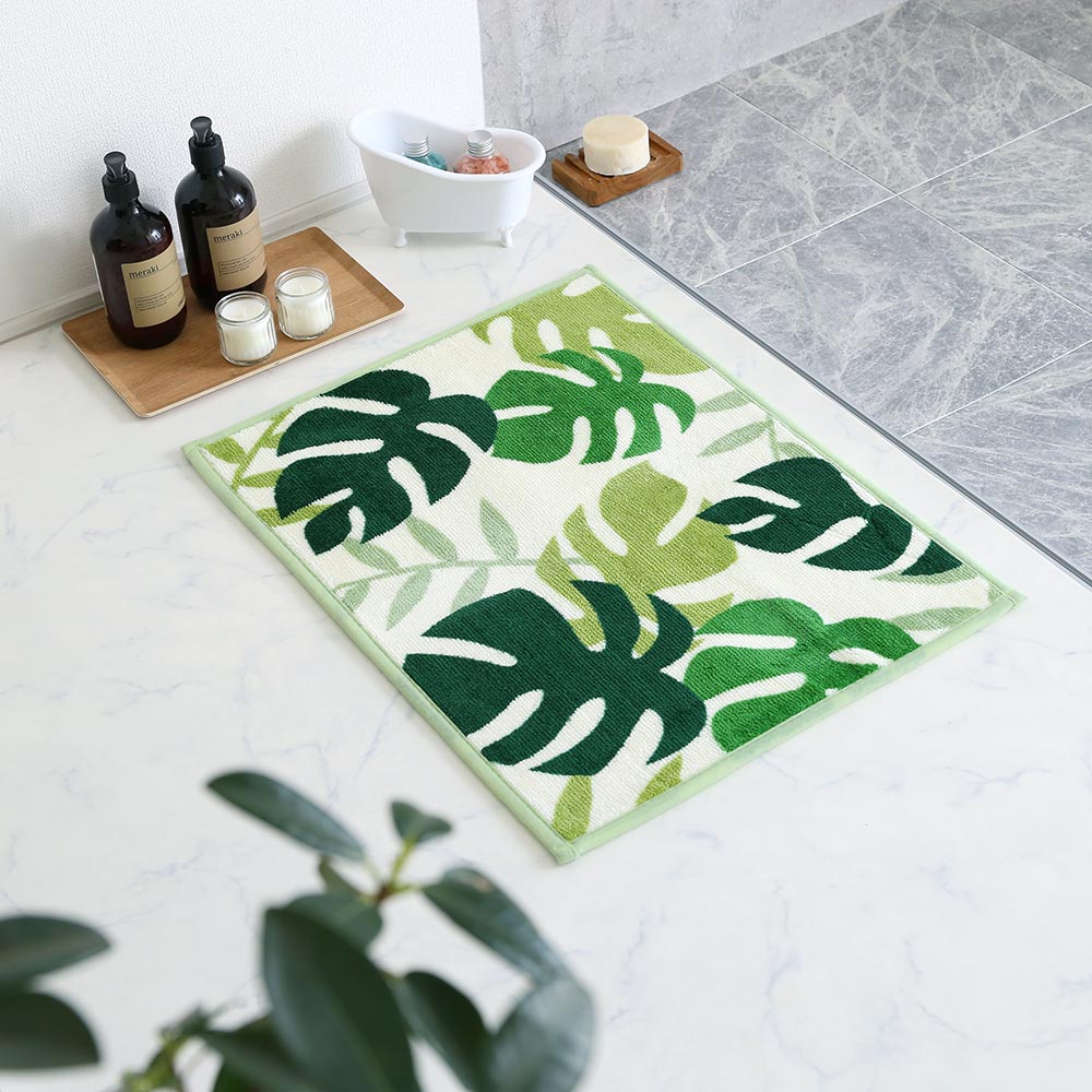 モンステラの自然な温かみを感じる、おしゃれなバスマットで、理想のバスルームを是非。