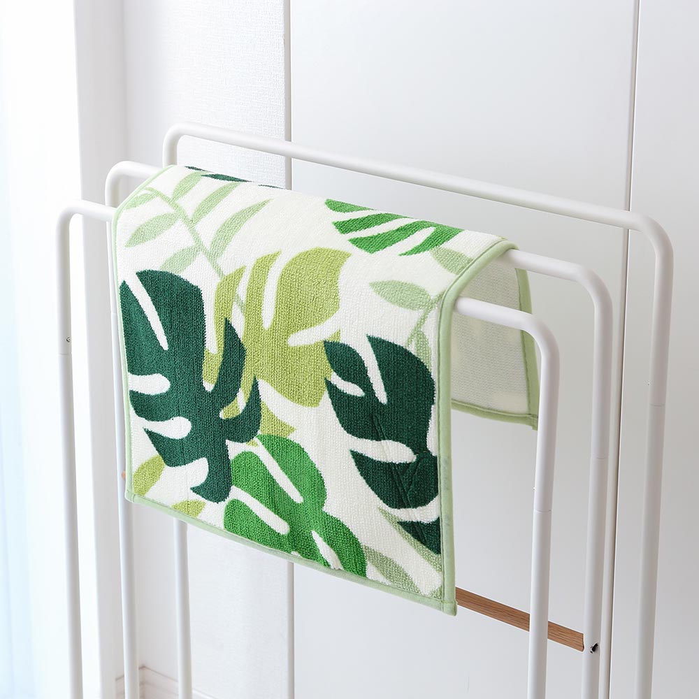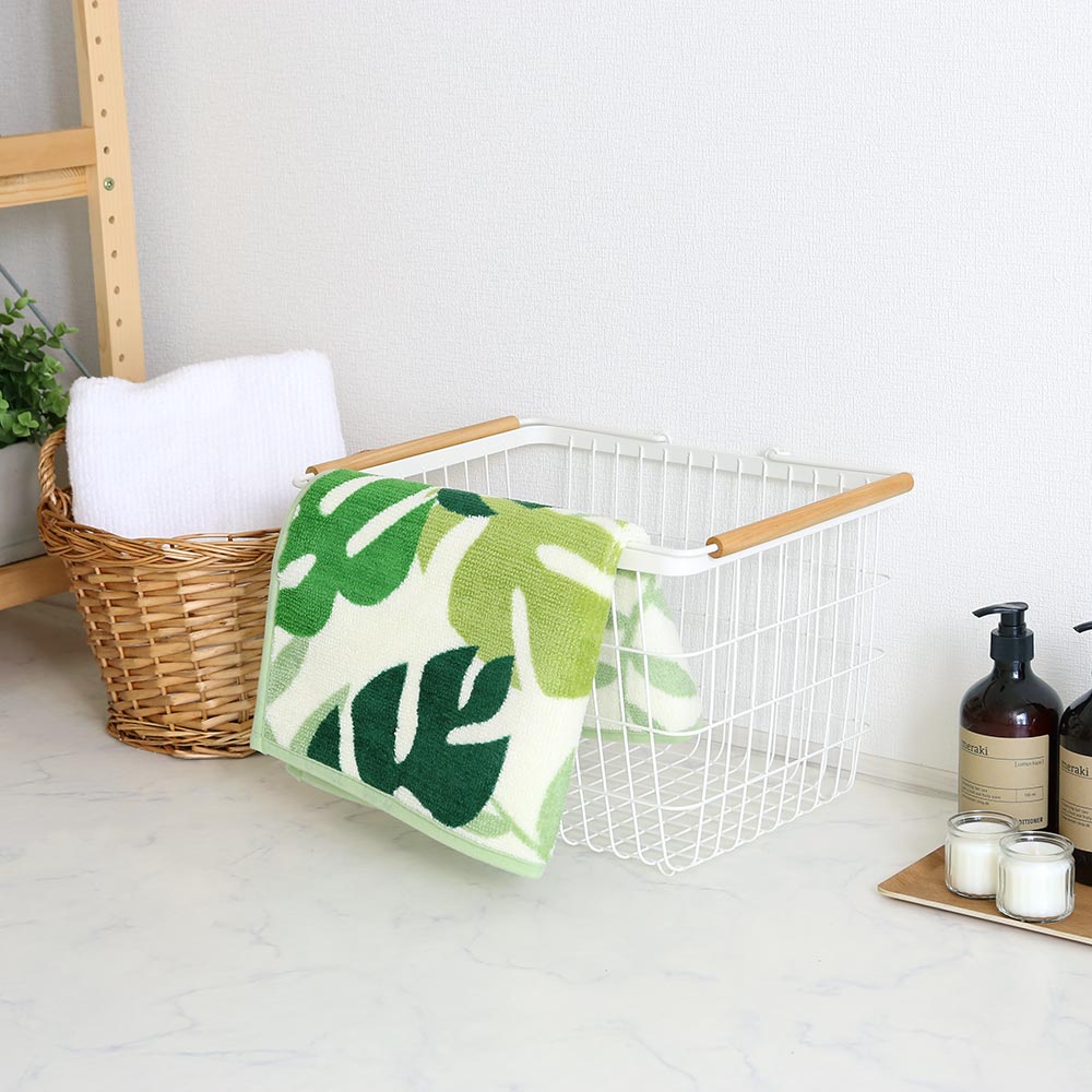 誰もが知っているモンステラデザインがとってもおしゃれ。バスルームに映えるグリーンが、清潔感をもたらします。
