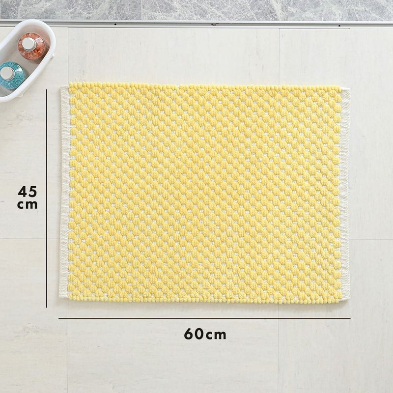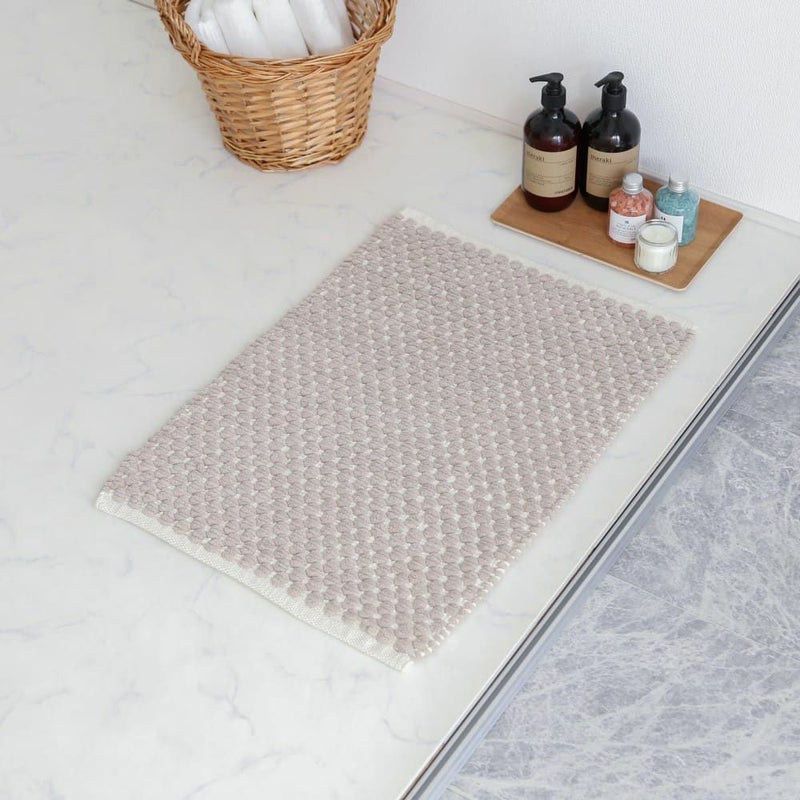 人の手で丁寧に織られた、優しい風合いのバスマットをご用意しました。ポコポコとした足触りが癖になる仕上がりに。