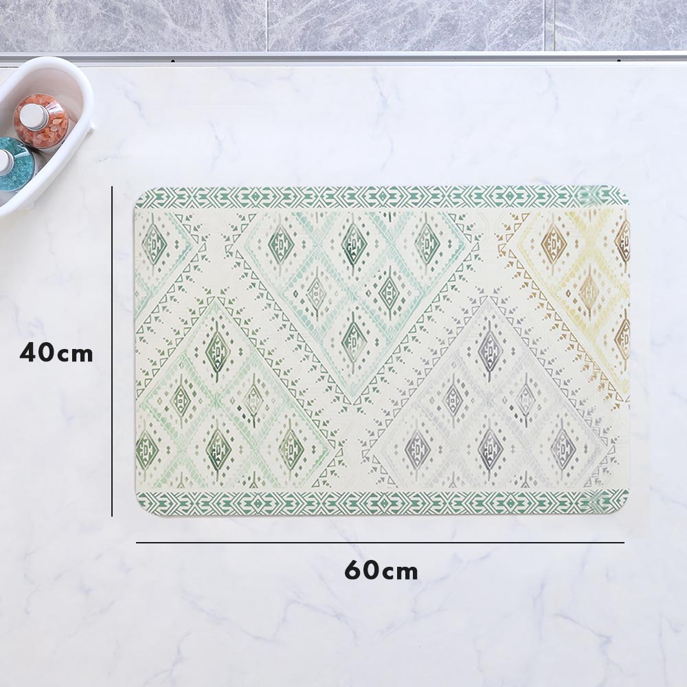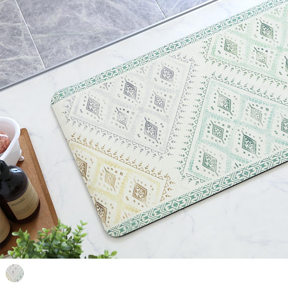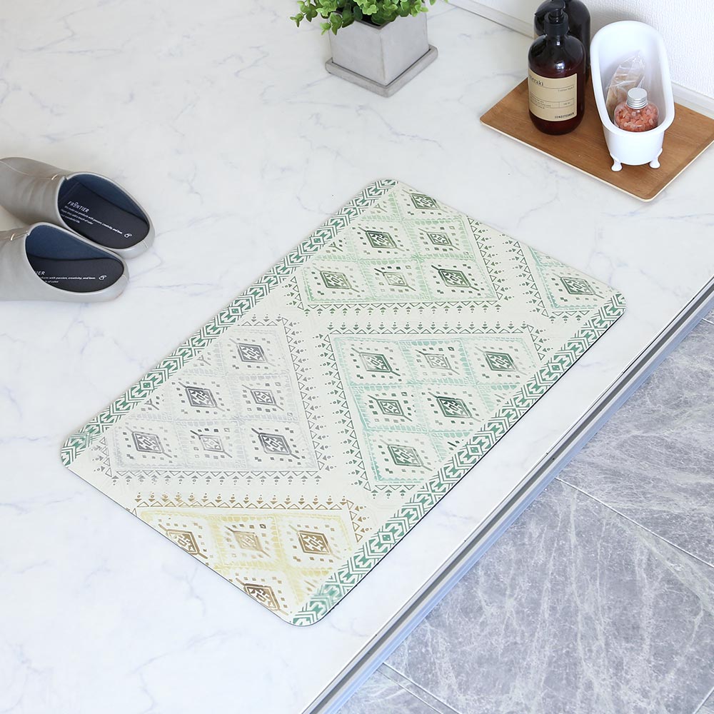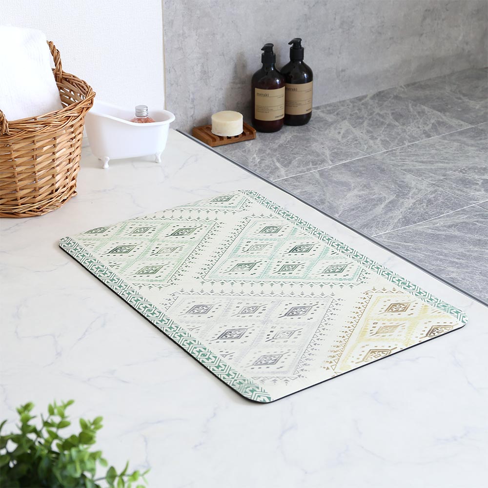 ネイチャーカラーと複雑なデザインがおしゃれな、トルコ柄のバスマット。 珪藻土パウダーを配合した素材により、「デザイン」「吸水性」「踏みごこち」の3つを叶えるソフトな珪藻土バスマットです!