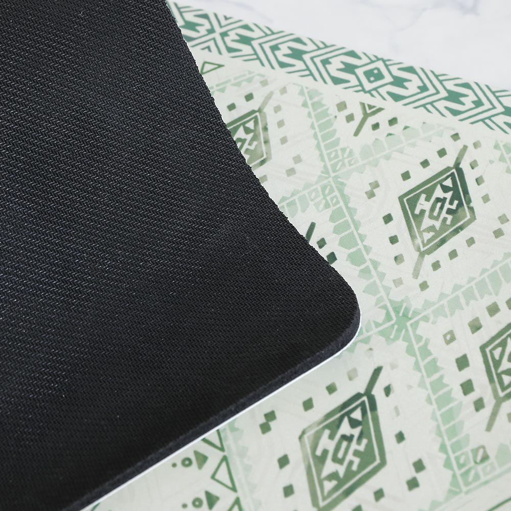 裏面は、天然ゴムにエンボス加工を施しているので滑りにくく、床も傷つきません。お年寄りやお子様にも安心です。