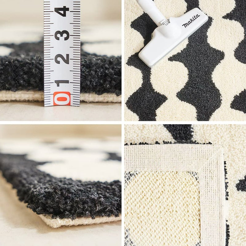 パイルの長さは15mmと床の硬さを感じさせないしっかりとした厚み。裏面は滑りにくい加工付き。ズレにくいので、お子様がいるご家庭でも安心です。