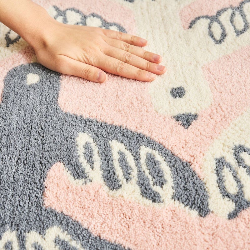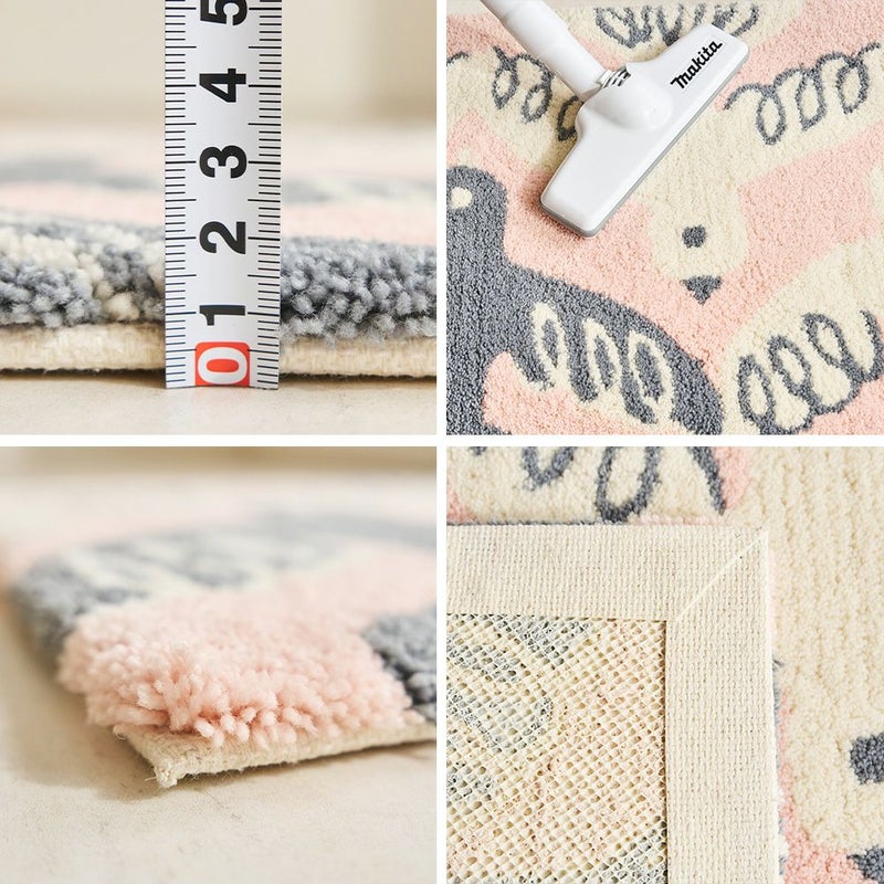 パイルの長さは床の硬さを感じさせないしっかりとした厚み。裏面は滑りにくい加工付き。ズレにくいので、お子様がいるご家庭でも安心です。