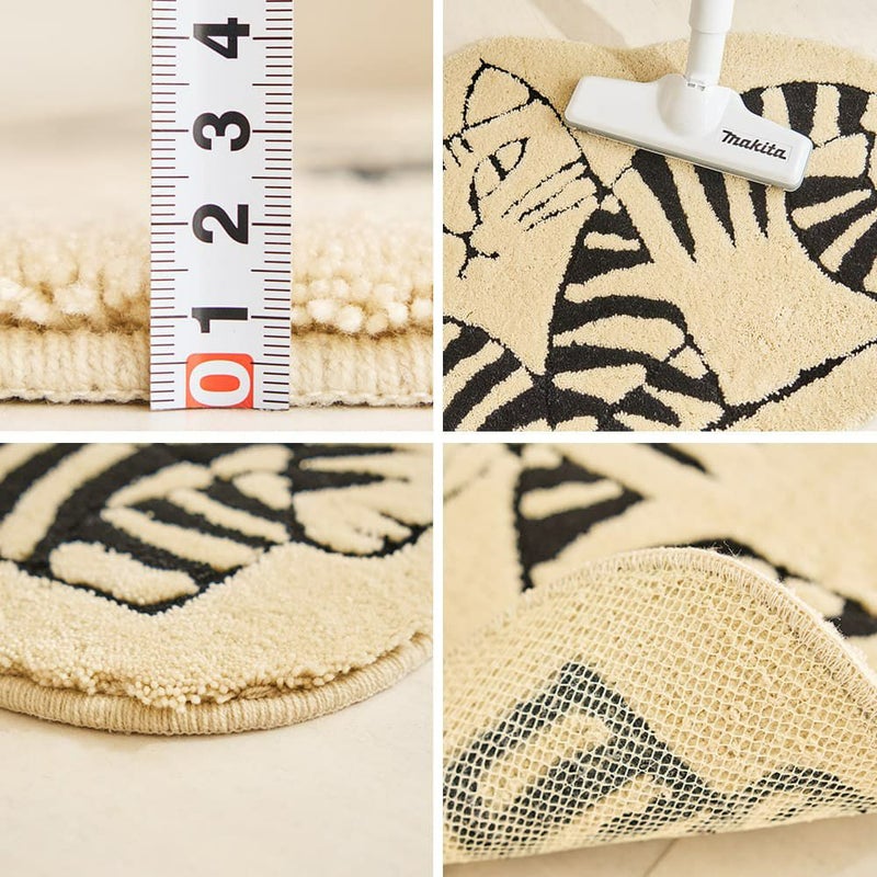 パイルの長さは15mmと床の硬さを感じさせないしっかりとした厚み。裏面は滑りにくい加工付き。ズレにくいので、お子様がいるご家庭でも安心です。