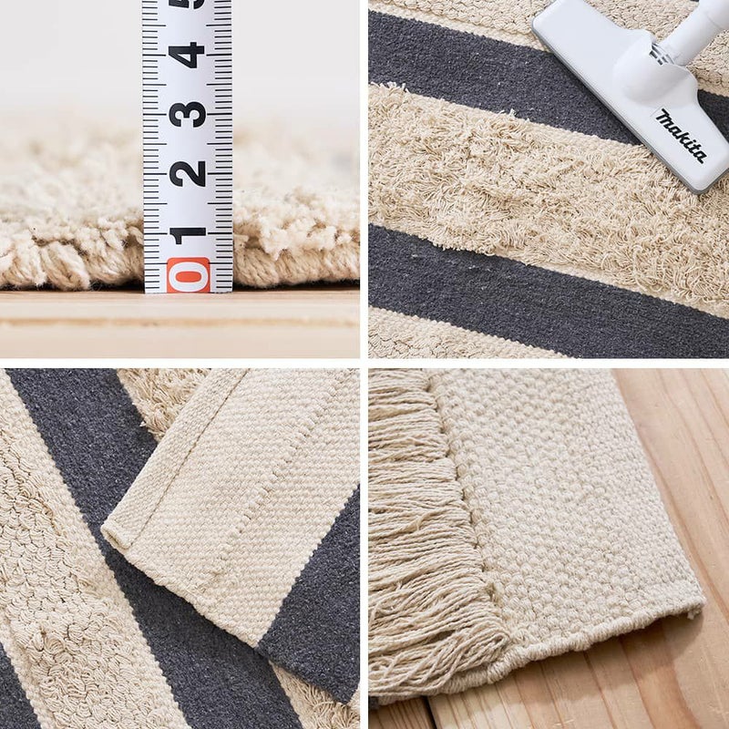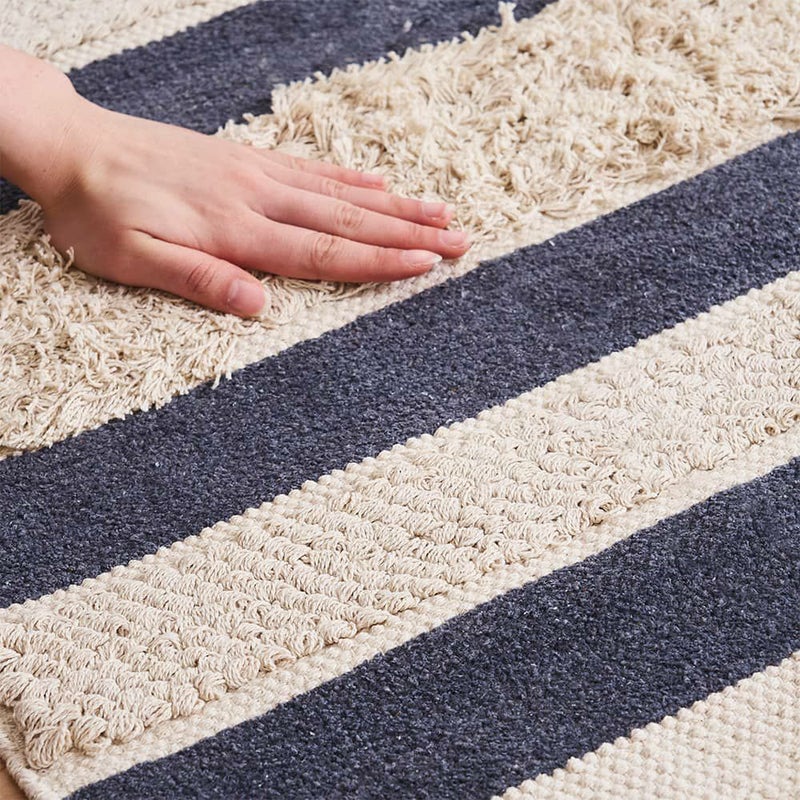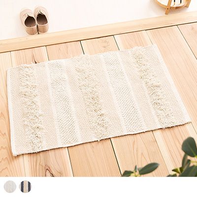 異なる織り方で表現された異素材風のデザインがかわいい、ストライプ柄の玄関マット。こだわりを感じさせるデザインながら、ナチュラル系のインテリアにスッと馴染んでくれます。