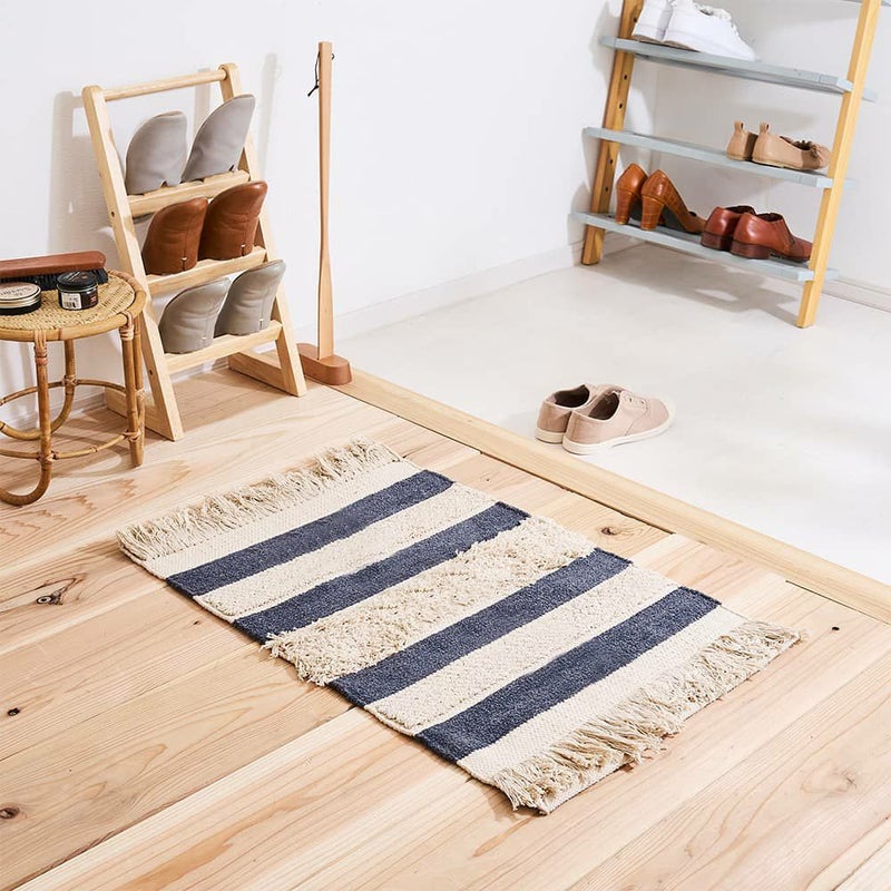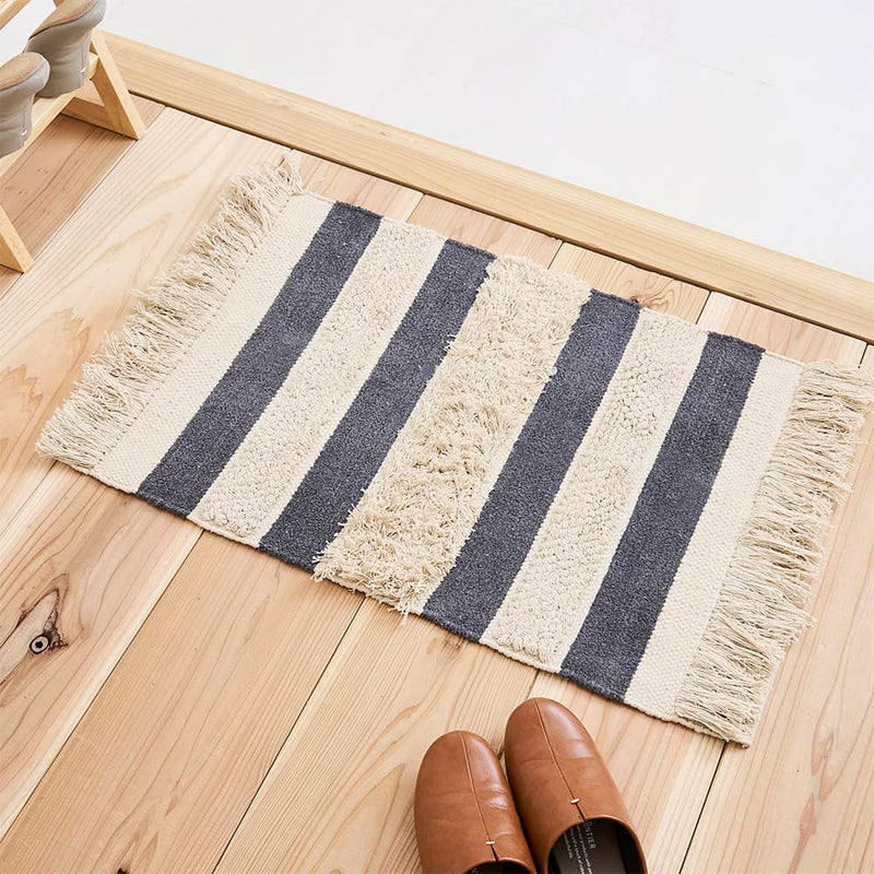 異素材風デザインがかわいい、ストライプ柄の玄関マット