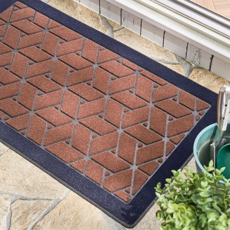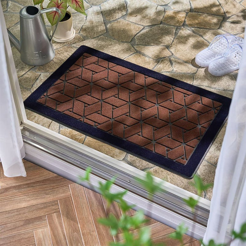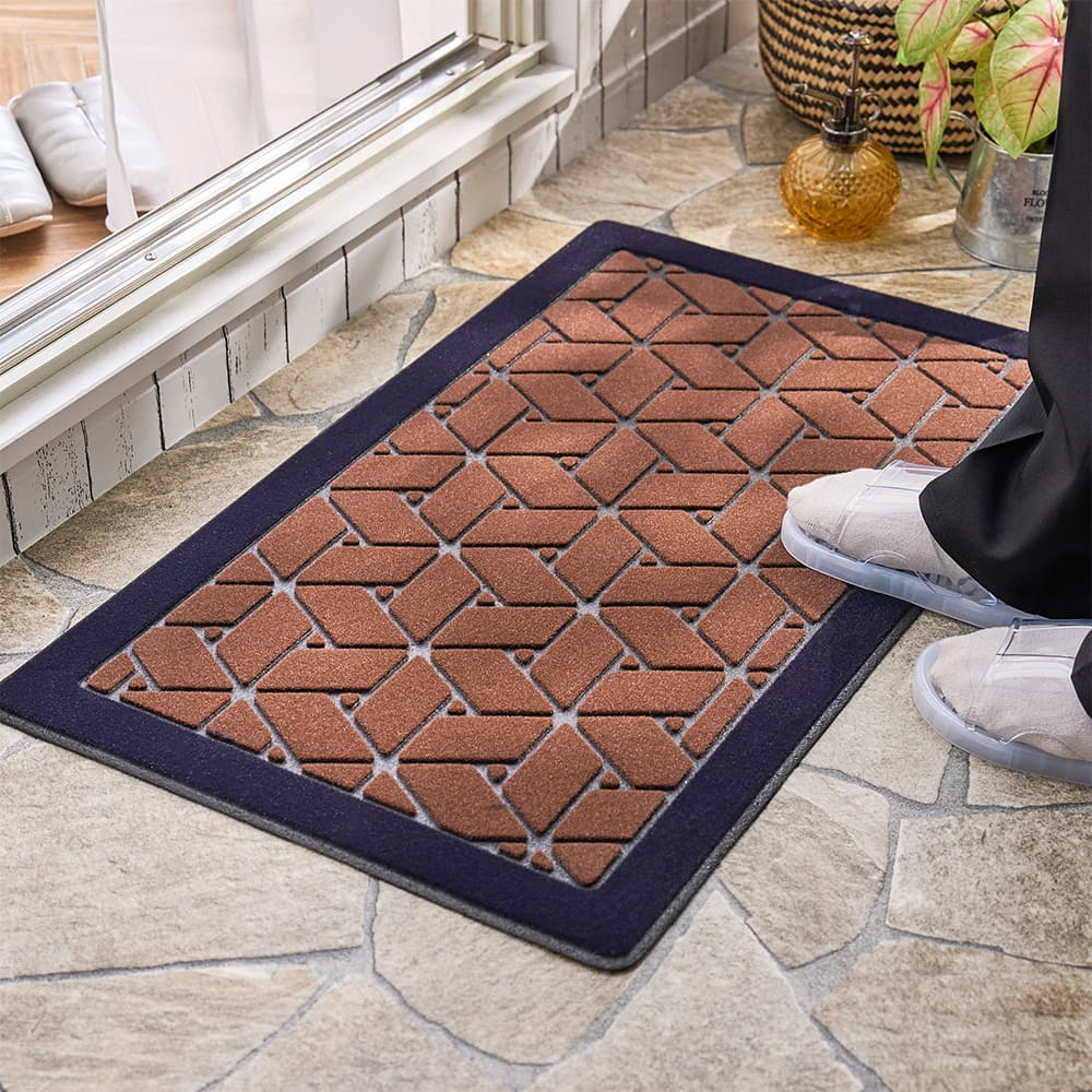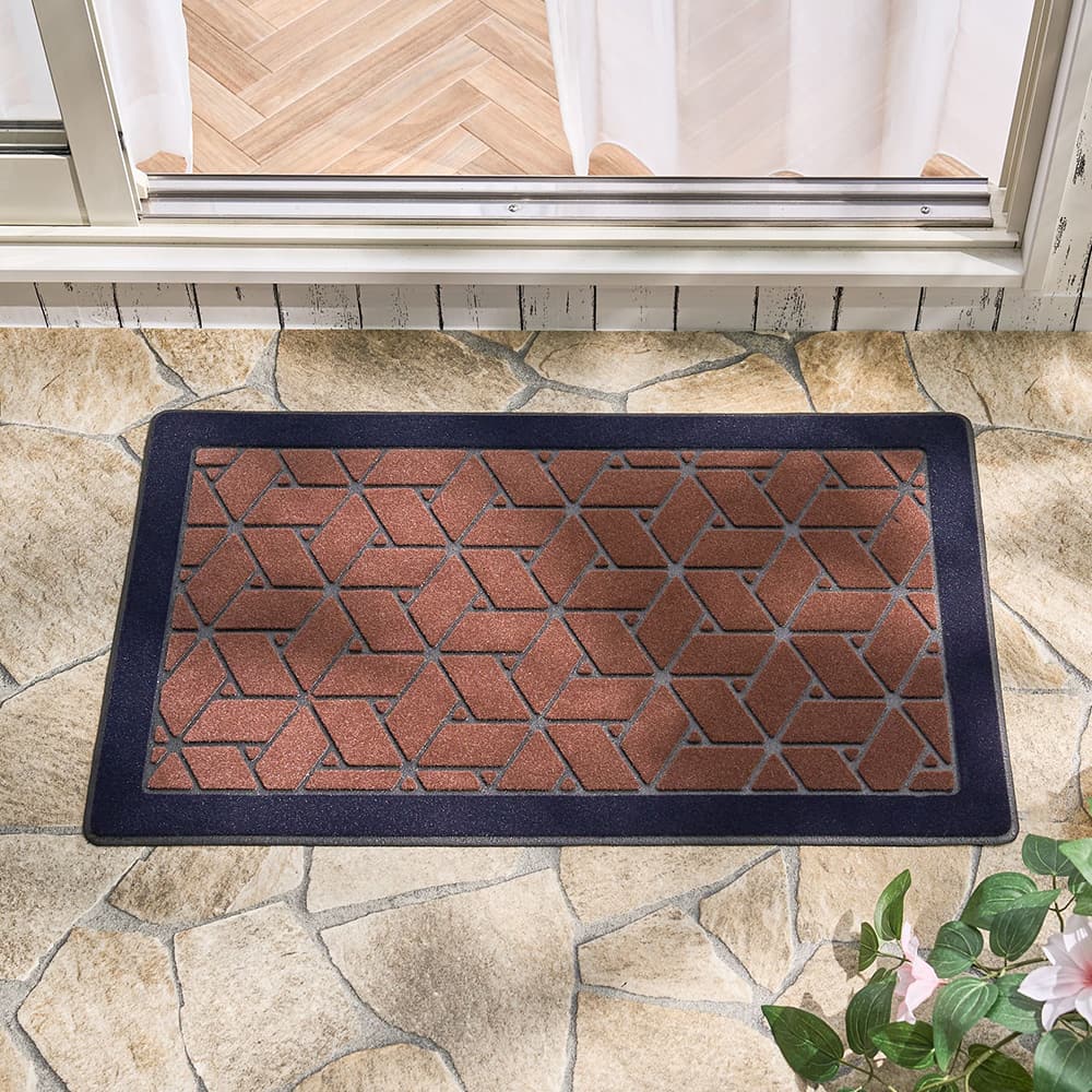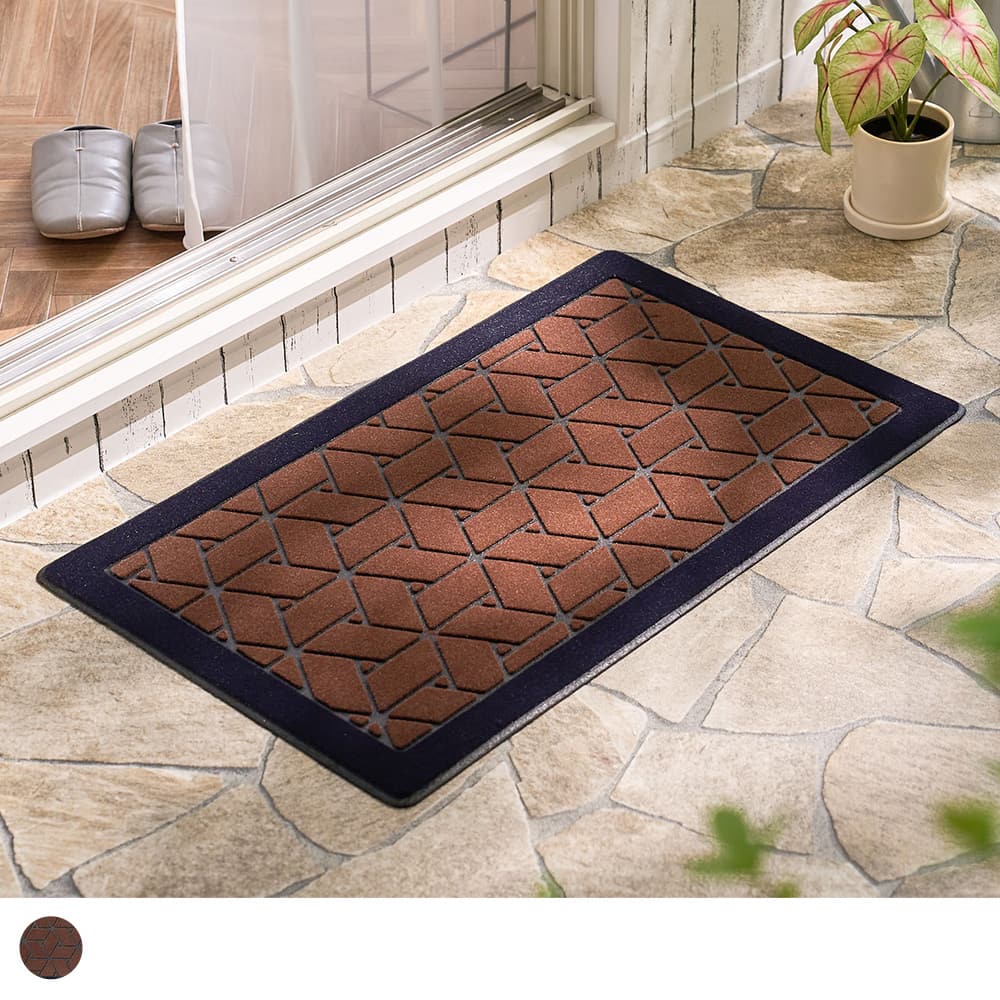 古くから建築や着物の柄として用いられてきた、魔除けの意味を持つ網代柄。レンガ調のカラーで、和と洋どちらのテイストにもマッチする屋外用玄関マットです。