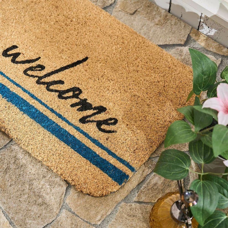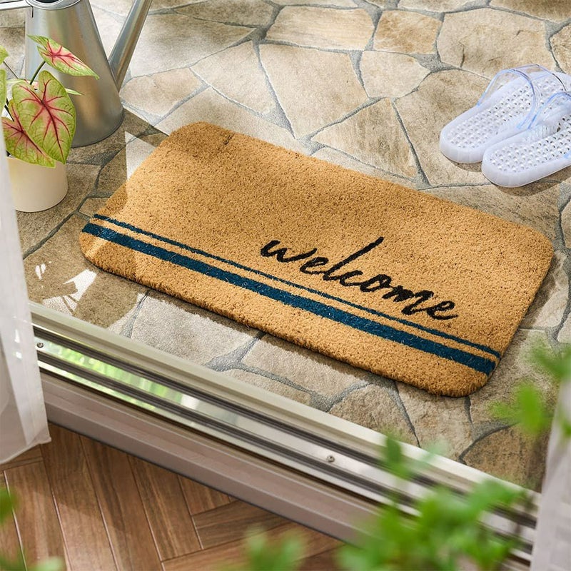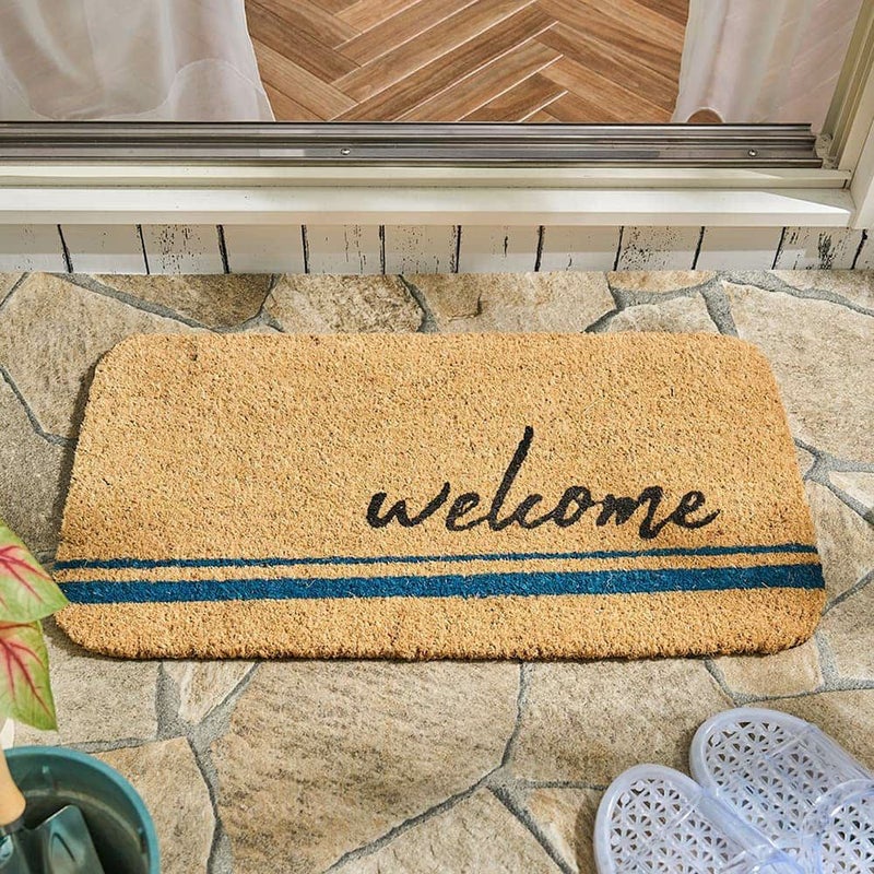 ココヤシ素材の生地にブルーのアクセントが目をひくコイヤーマット「ブルーココ」。コイヤーとはココナッツの果皮からできた繊維のこと。そんな自然素材をふんだんに使用した、屋外用玄関マットをご紹介します。