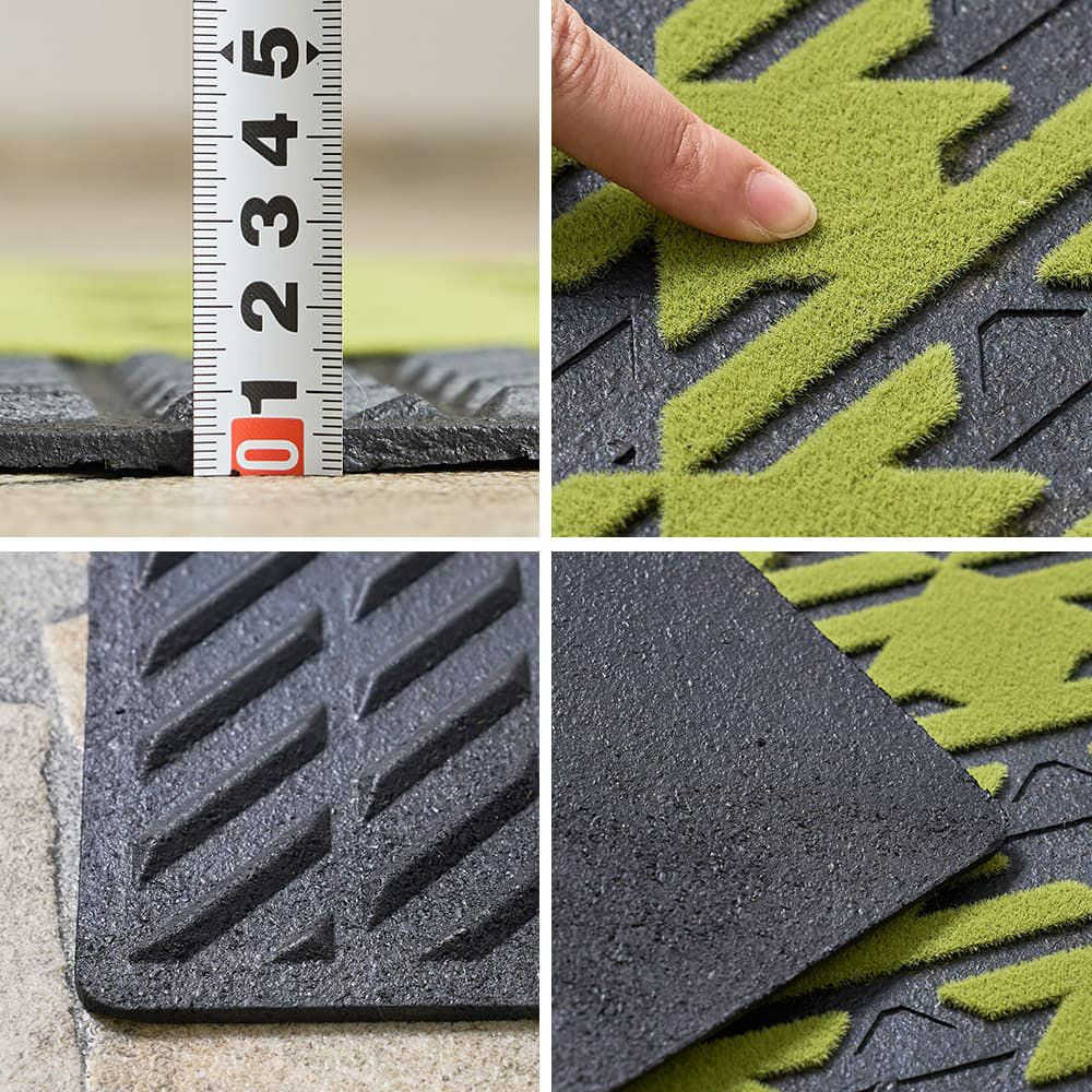 パイル部分には、摩擦に強いナイロン素材を使用。型崩れしにくく耐久性も抜群なので人通りの多い玄関前でも安心。細かな溝部分としっかりとしたパイルで、靴裏の汚れを落としてくれます。