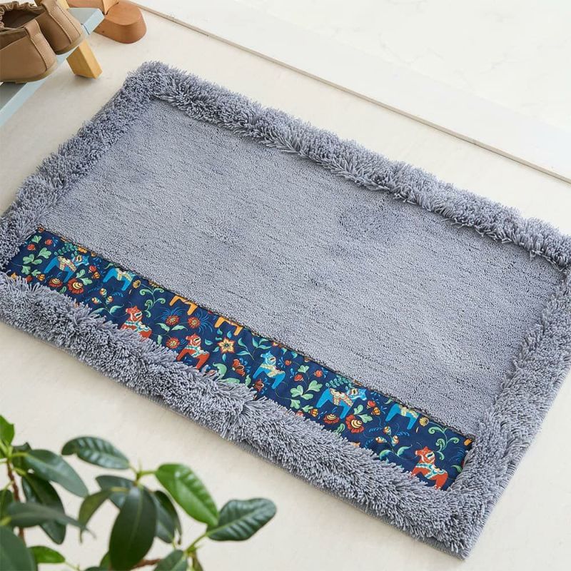 一部分にさりげなく縫い付けられた北欧柄の生地や、縁だけ長くなっているふさふさとしたパイルなど、細かい部分にこだわりが感じられるデザインの玄関マット「ダーラヘスト」。個性が光るマットと、あなただけの空間作りを始めませんか?