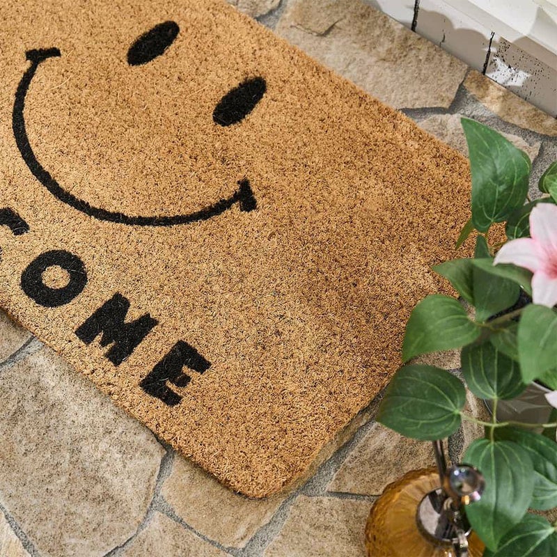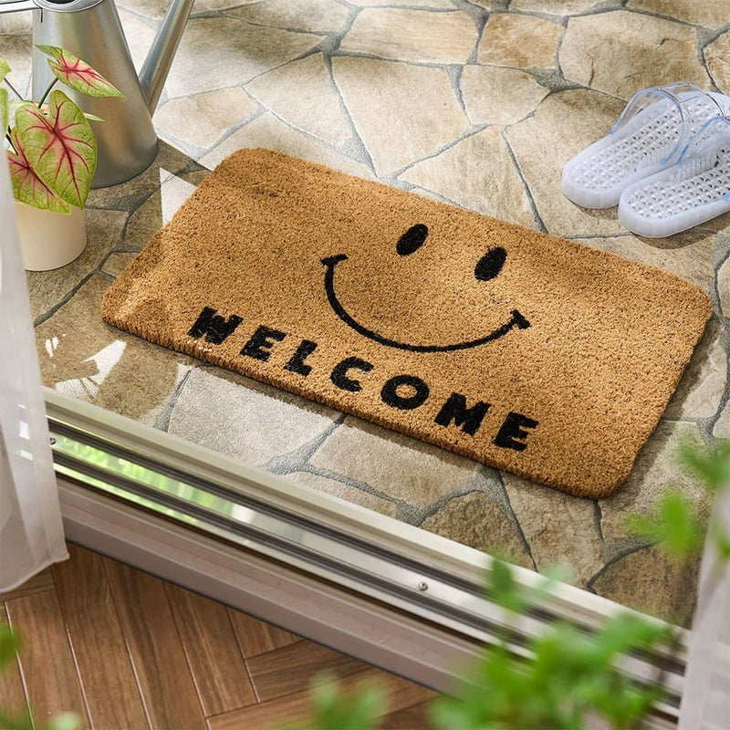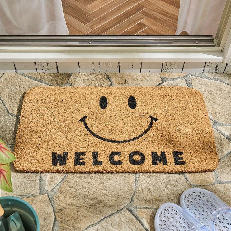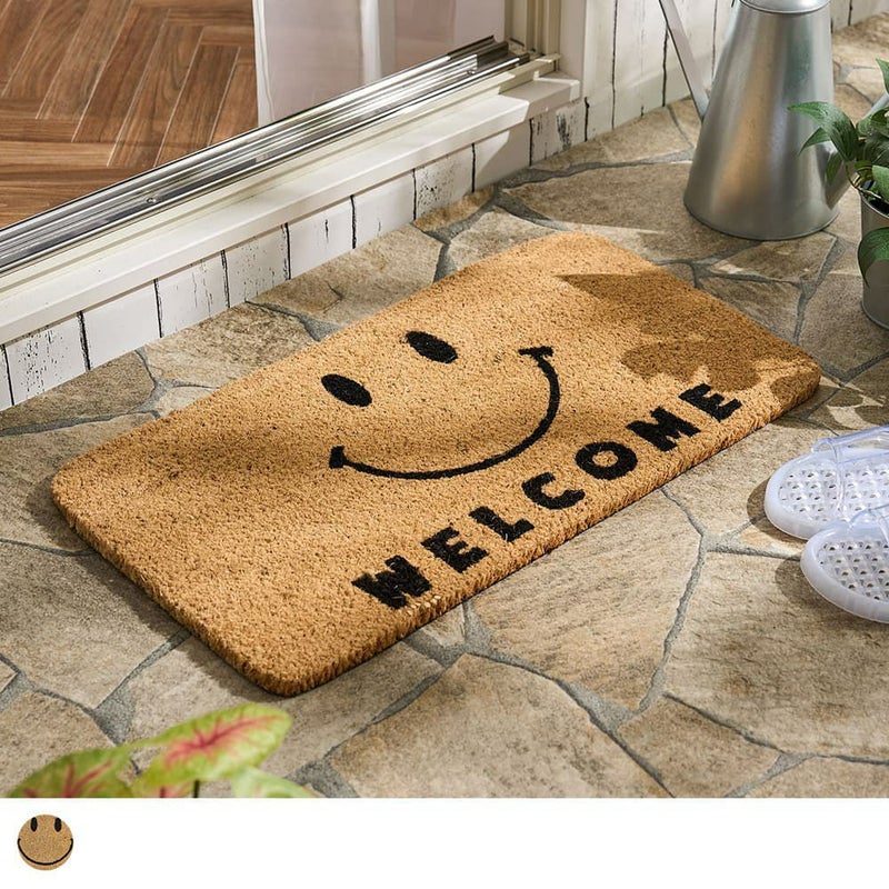 ざっくりとした素材感にナチュラルな風合いのココヤシ繊維にスマイルデザインがかわいいコイヤーマット。天然素材であるココヤシ繊維のため水はけも良く、玄関やベランダなどで活躍してくれる機能性も魅力。主張しすぎないデザインで、玄関にアクセントを添える一枚です。