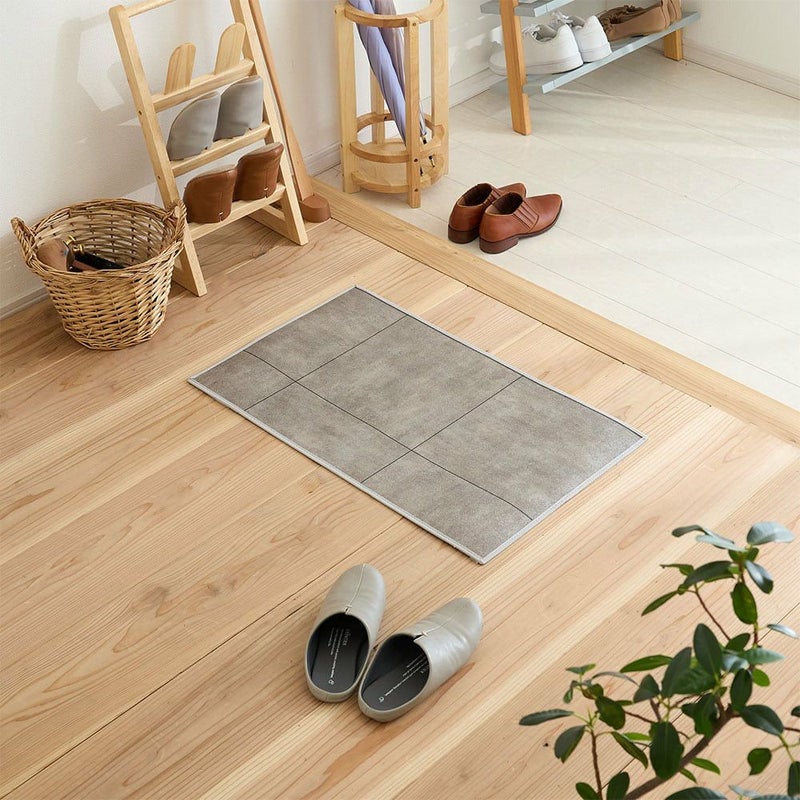 モルタルタイル風デザインがスタイリッシュな雰囲気の撥水マット