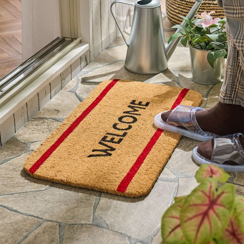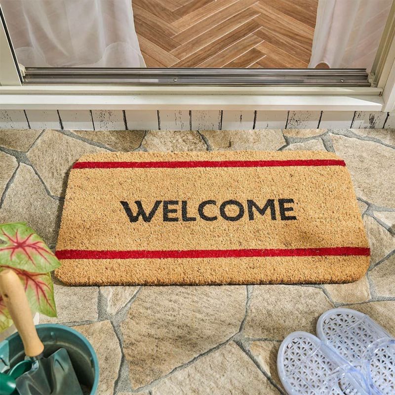 ぬくもりを感じる自然素材ならではの生地感に、赤いラインとwelcomeのアクセントが爽やかなコイヤーマット「レッドココ」。ココナッツの果皮からできた繊維のざっくり感と、どんな空間にも馴染むシンプルさが魅力の一枚をご紹介します。