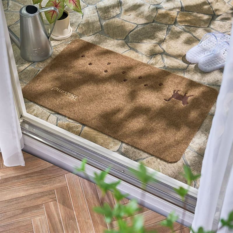 玄関やベランダはもちろん、カフェや美容室などの店舗用としてもおすすめの、猫の刺繍がさりげなく空間に遊び心をプラスしてくれる屋外用玄関マット。耐久性に優れた素材で実用性も十分な一枚をご紹介します。