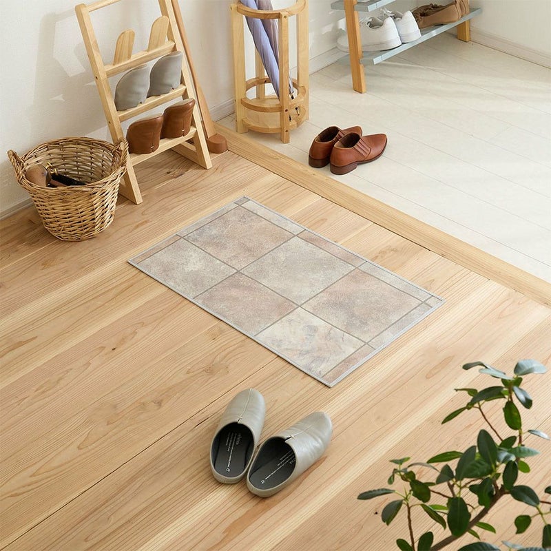 石畳のような上品なタイル模様がかわいらしい玄関マット。淡い色合いが優しい雰囲気でインテリアの邪魔をせずに馴染んでくれます。毎日使うのに嬉しい撥水・抗菌・防カビ・滑り止めなど、機能性もデザイン性も兼ね備えた魅力満点の一枚をご紹介します。