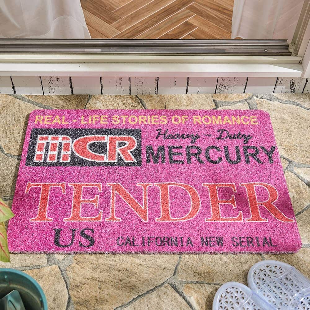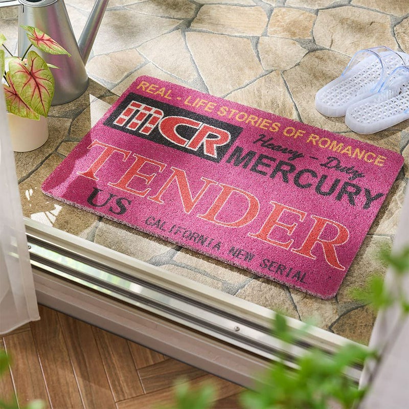 インパクトのあるアメリカンレトロなデザインが目を引く、屋外用マット「テンダー」。玄関はもちろん、ガレージなどにポイントで敷くのも空間のアクセントになりおすすめです♪