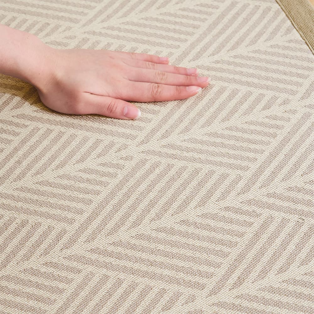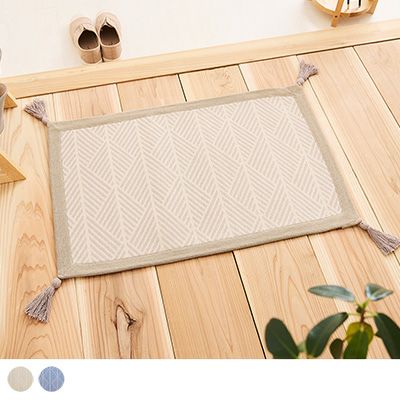 ツートーンで織られた幾何学模様が、様々なテイストのお部屋にフィットするおしゃれな1枚。ウォッシャブル仕様のコットンマットで、いつでも快適にお使いいただけます。