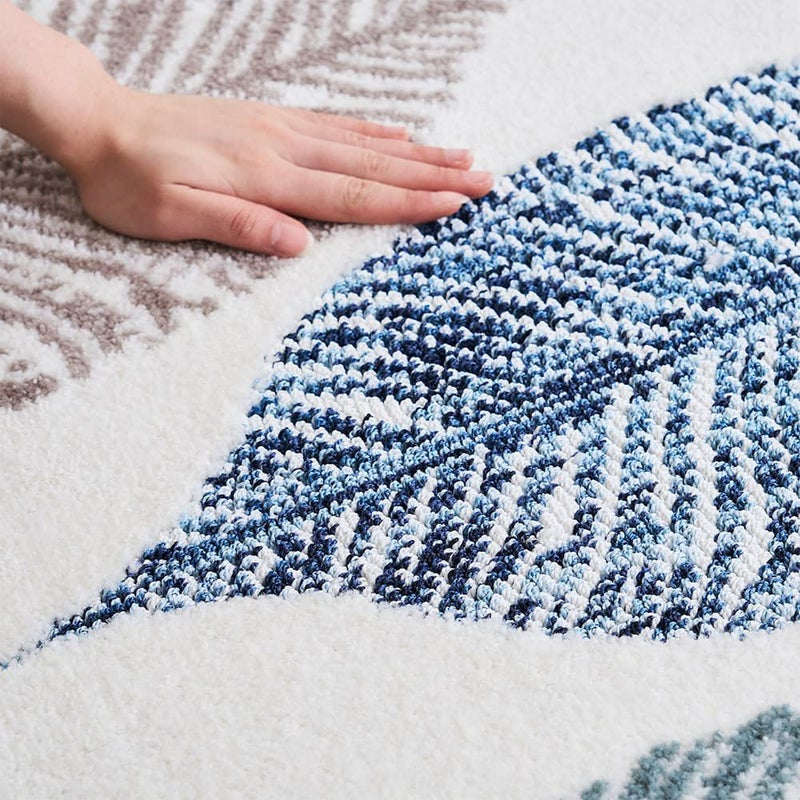 パッと目を惹く葉っぱのモチーフを、落ち着いた色使いでまとめた北欧テイストの玄関マット。綺麗なくすみカラーも相まって、空間を柔らかくおしゃれにしてくれます。