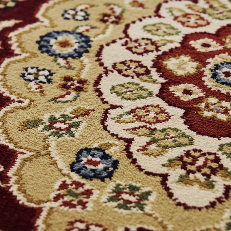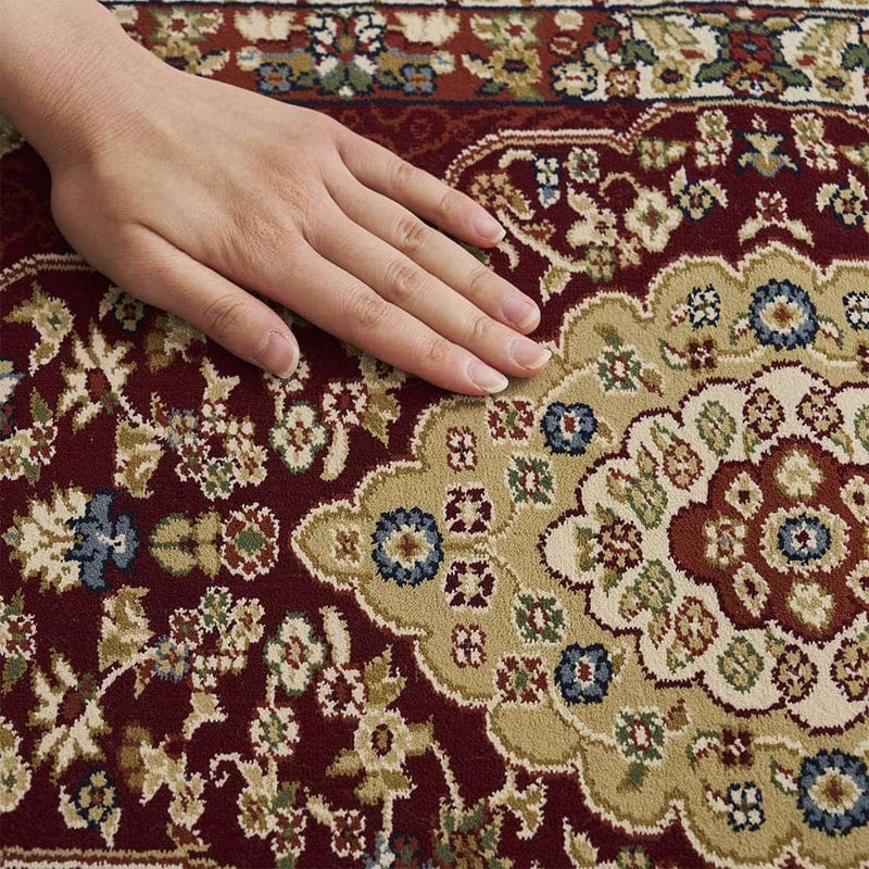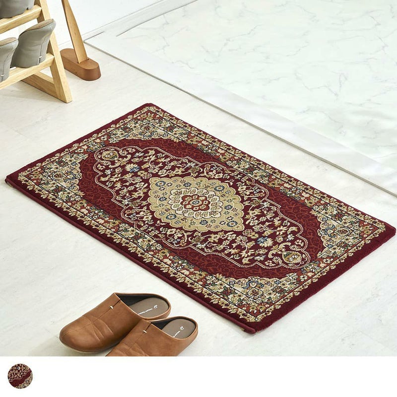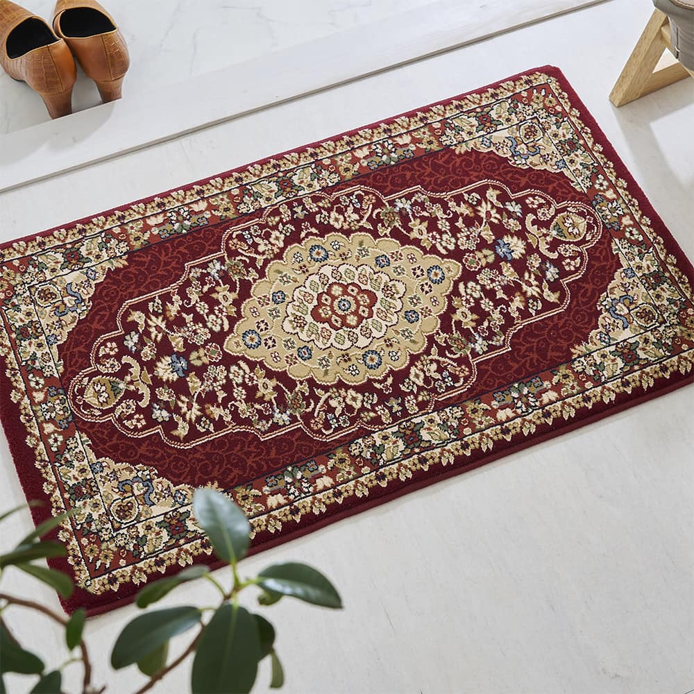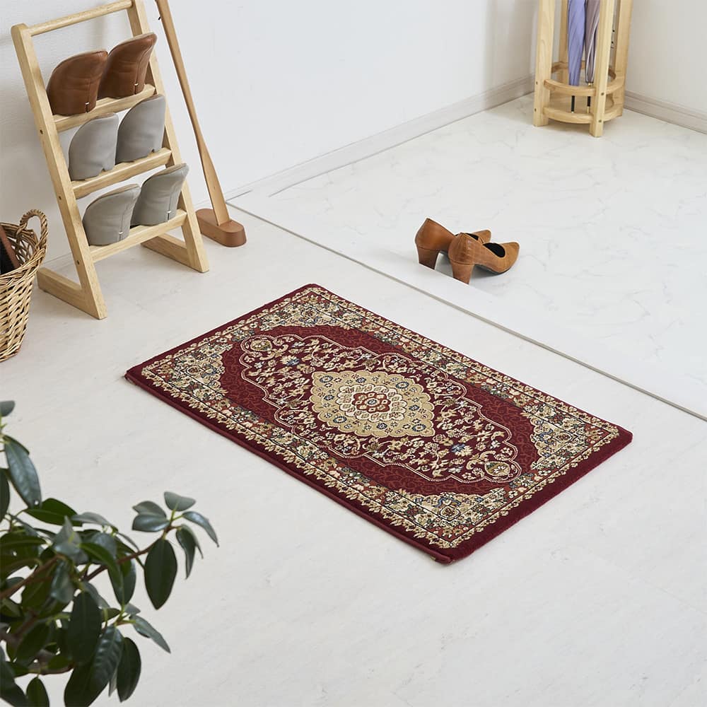 圧倒的な存在感を放つ、優雅なメダリオン柄が美しいウィルトン織り玄関マットです。75万ノットと最高級クラスの緻密な織りで表現されたデザインは、敷くだけで高級感が漂う一枚です。