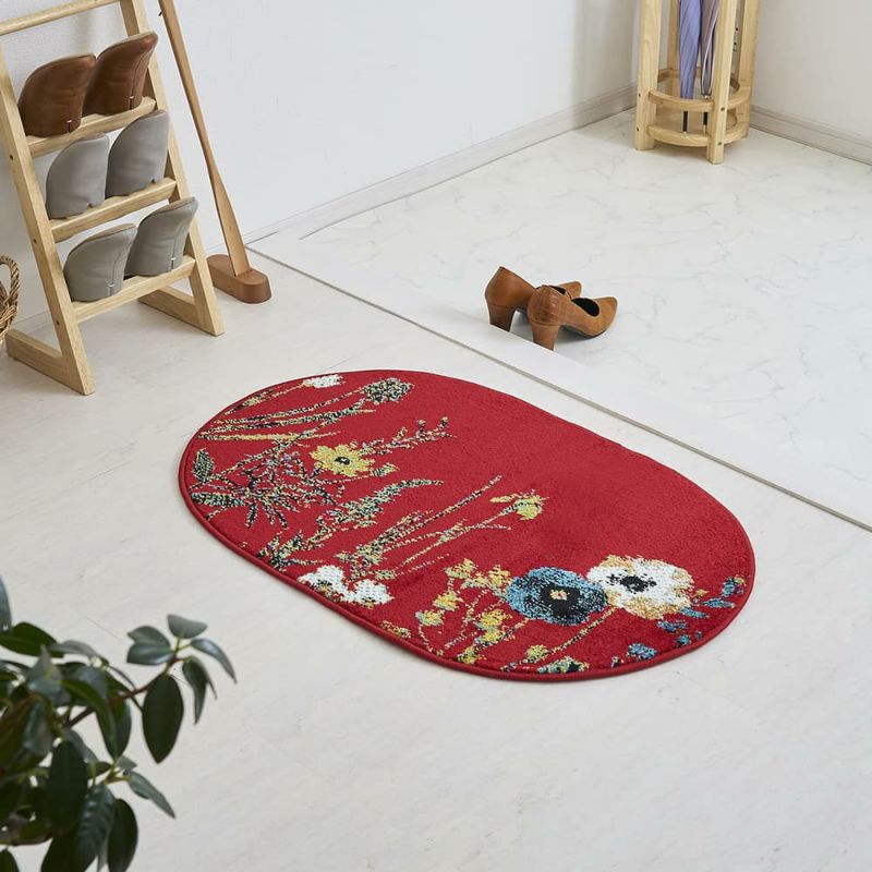 パッと目を惹く鮮やかなレッドと、繊細なボタニカルデザインが心を掴むウィルトン織り玄関マット。こだわりのマットを敷けばそれだけでインテリアの雰囲気もグッと上がり、毎日目にする空間が一気に華やかな印象に早変わり。空間の主役になる玄関マットに合わせて次はどんな小物を置こうかな・・・そんな楽しい想像がふくらむ1枚をあなたのお家にも。