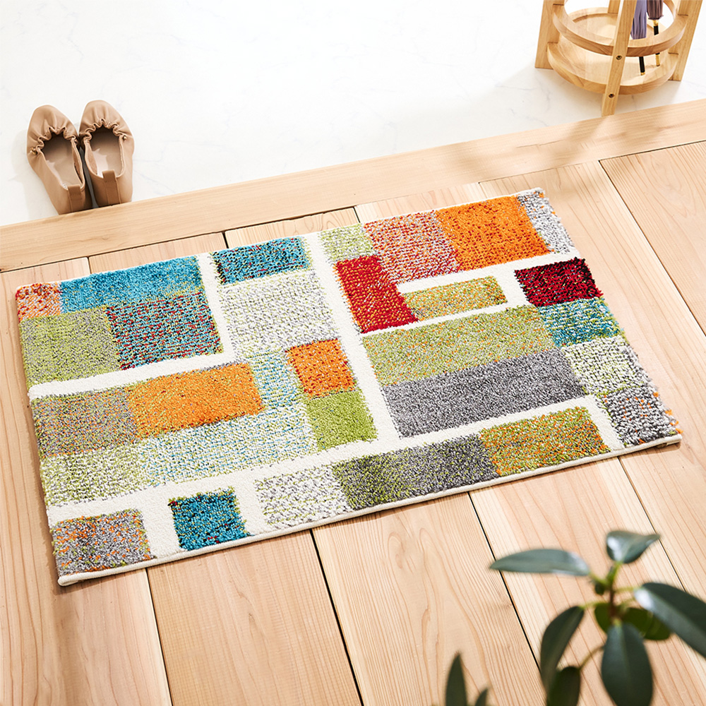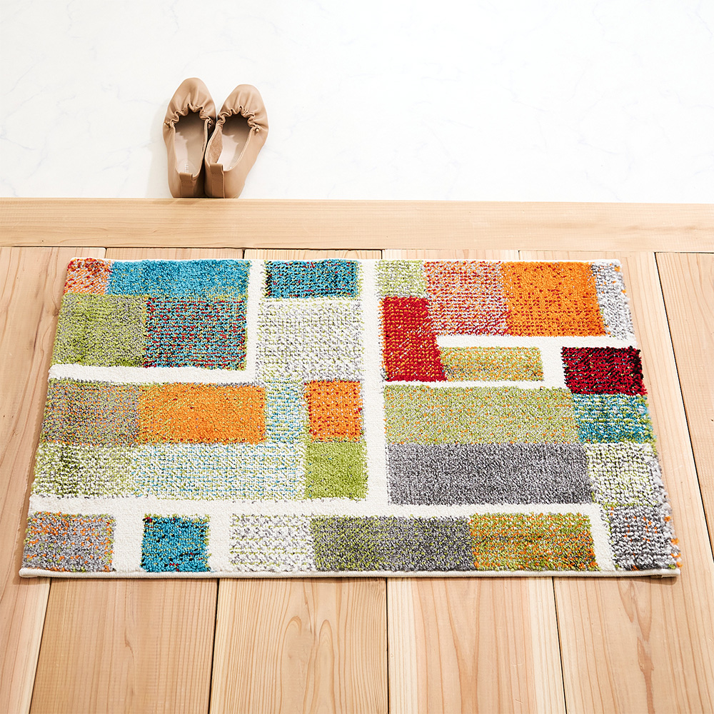 まるで現代アートのような、カラフルな幾何学模様が洗練された雰囲気を醸し出す玄関マット。弾力のある踏み心地と優れた耐久性が特徴のウィルトン織で仕上げた、長く使い続けたい一枚をご紹介します。