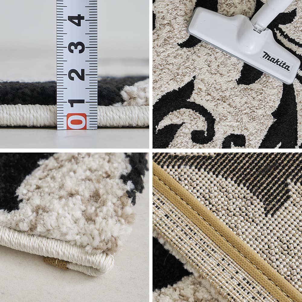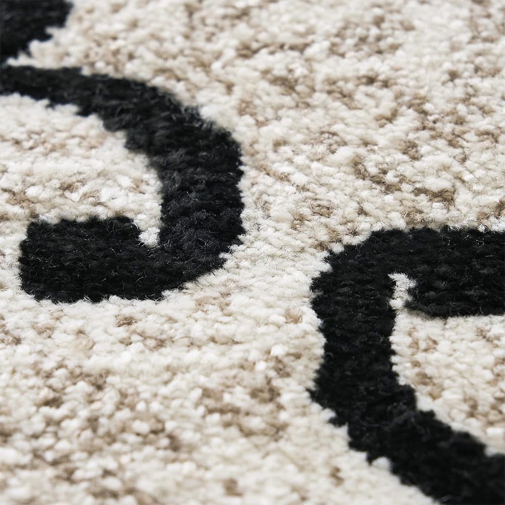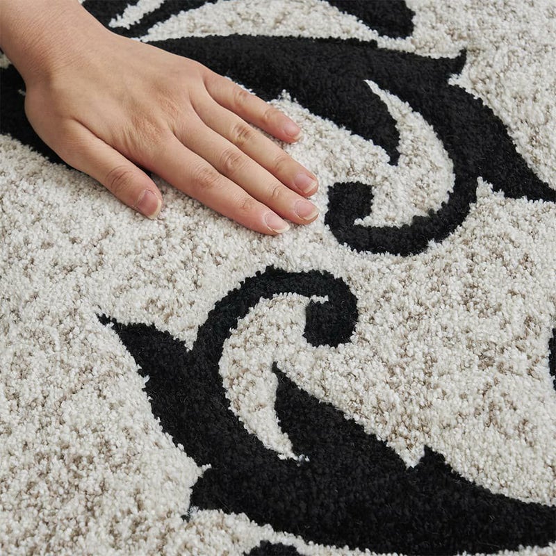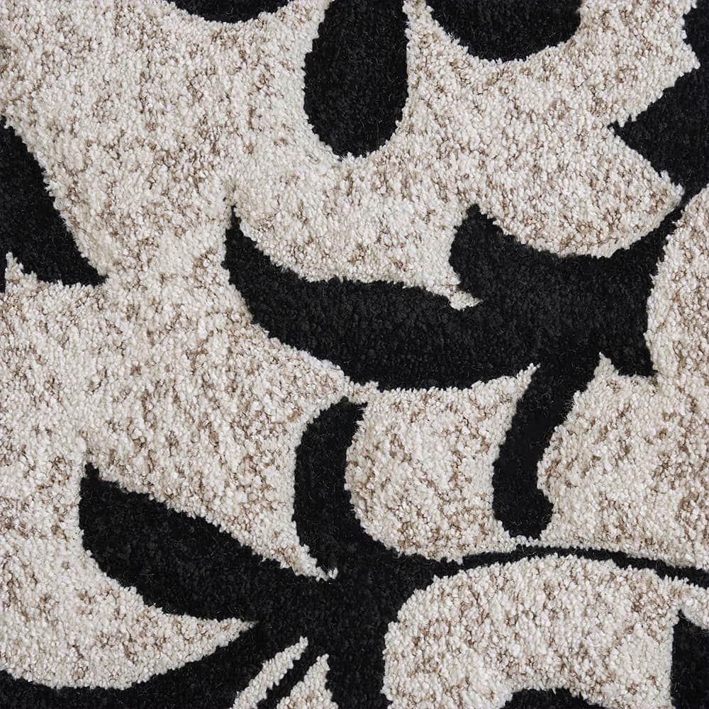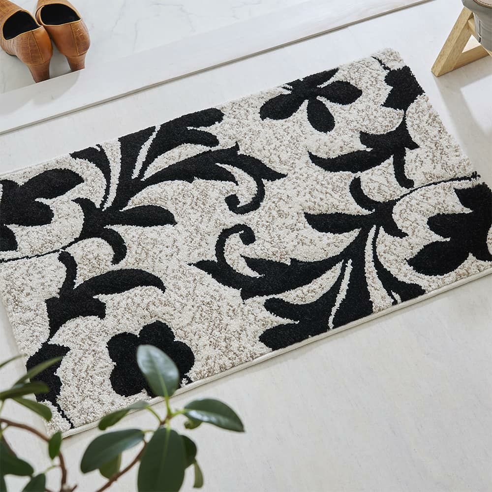 エレガントな蔦花模様をモノトーンで表現した、上品な佇まいの玄関マットです。凹凸感を作り立体的なデザインを作り上げるカービング加工を施しており、ホワイト系のラグジュアリーなテイストはもちろん、幅広いインテリアを格式高くまとめてくれる一枚に仕上げました。