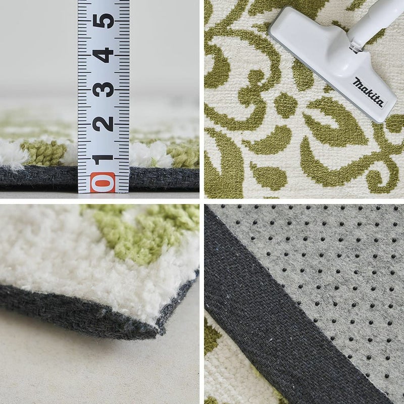 滑りやすいフローリングの床でも安全にお使いいただけるよう、裏面に滑り止め加工を施しました。また、ほつれを防ぐため端も丁寧に加工されています。