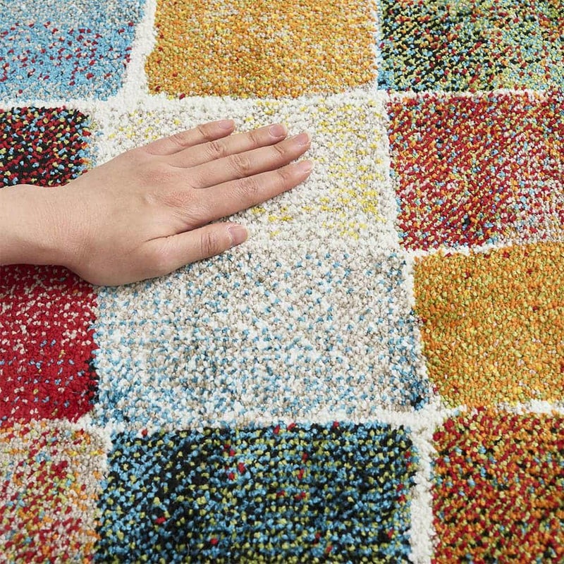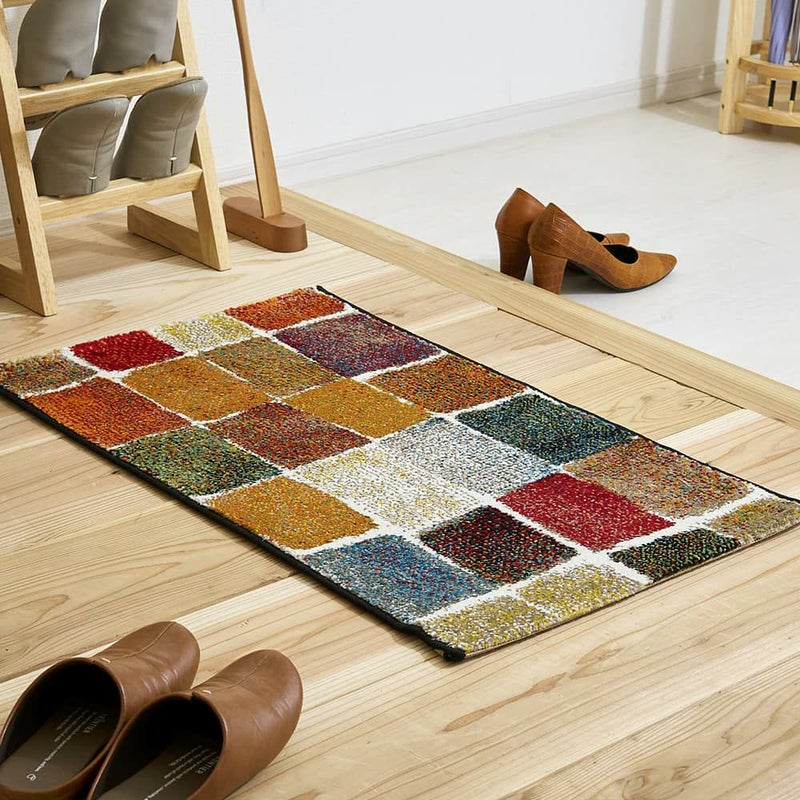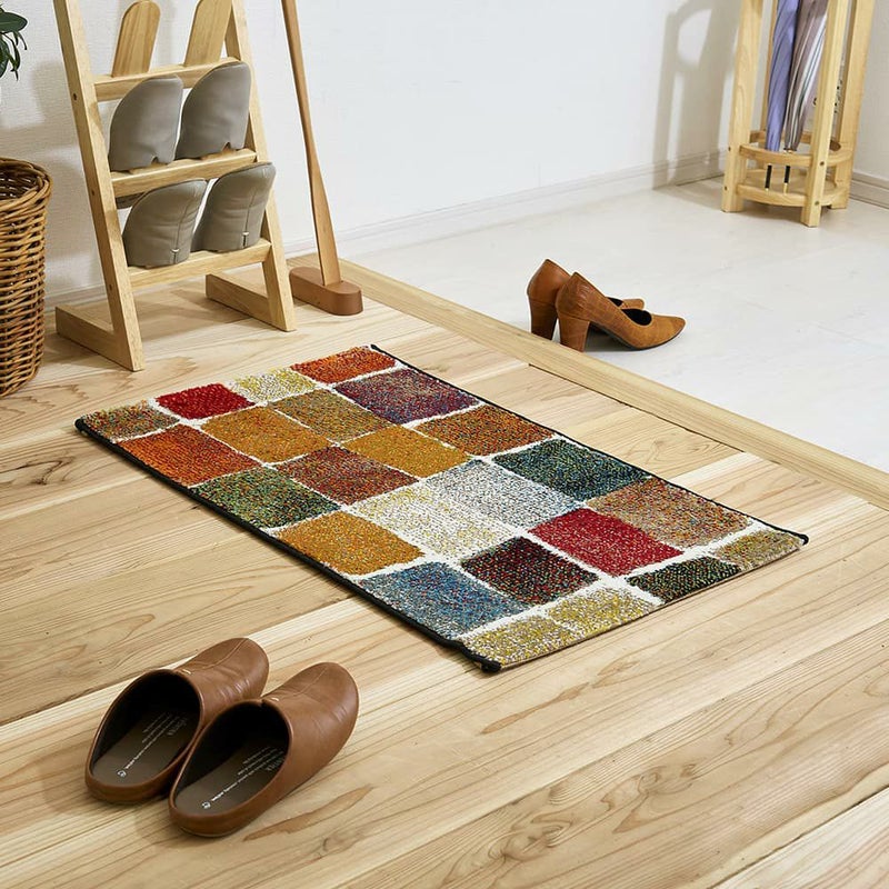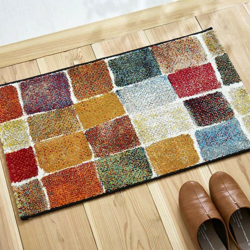 たくさんの色が使われたカラフルデザインのマットは、お部屋のどこかにひとつしっくりくる色味があるだけでスッとインテリアに馴染んでくれます。もちろん、ナチュラルな空間のアクセントとしても活躍してくれる、優秀なマットです。