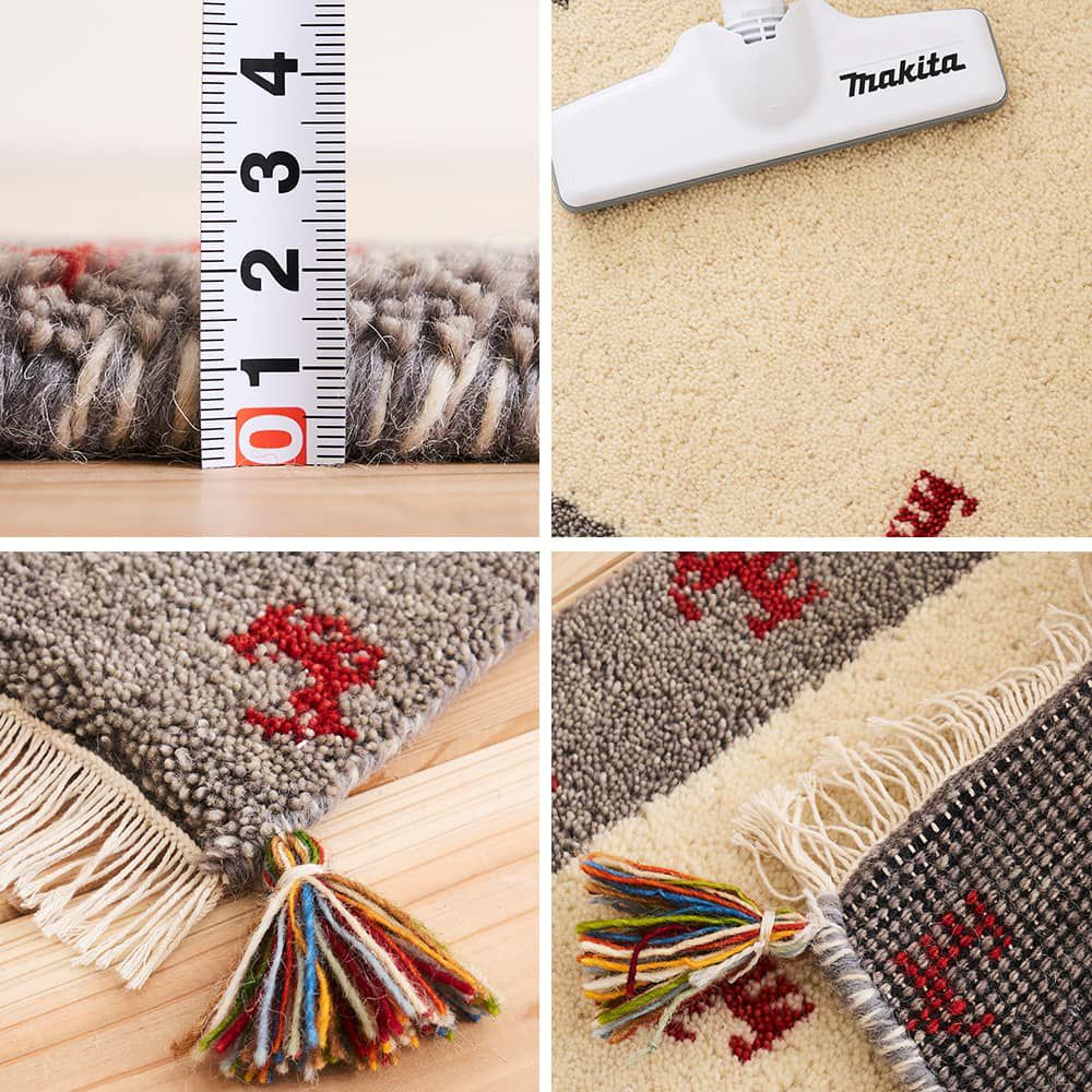ギャッベのマットはお手入れが大変なのでは?と思われる方も多いですが、目が詰まっていてごみが入りにくいので実は簡単!いつもの掃除機がけで、キレイを保てます。