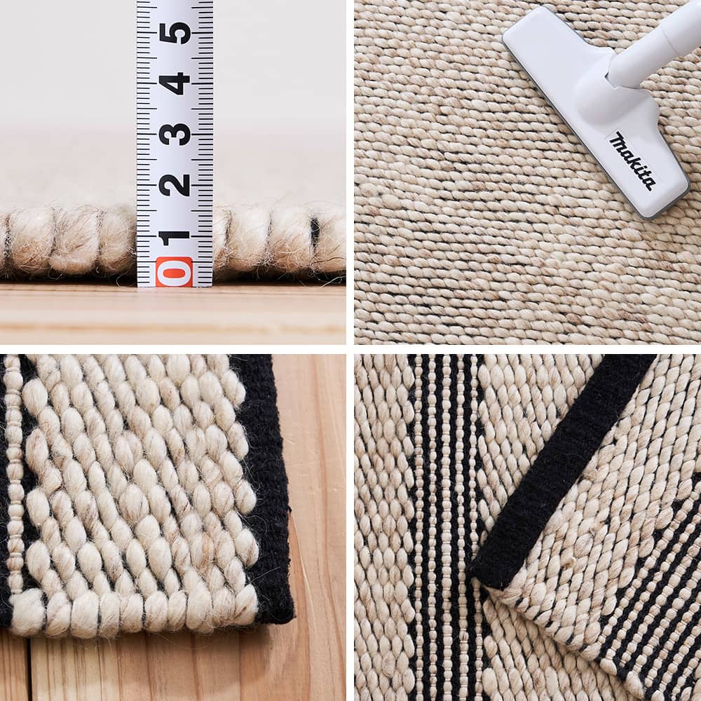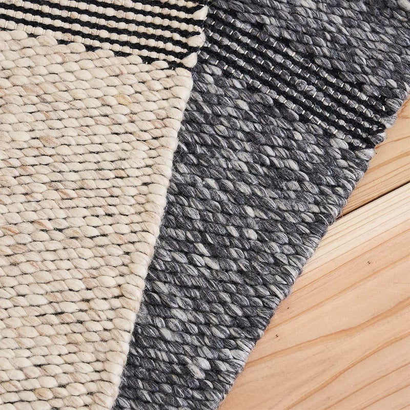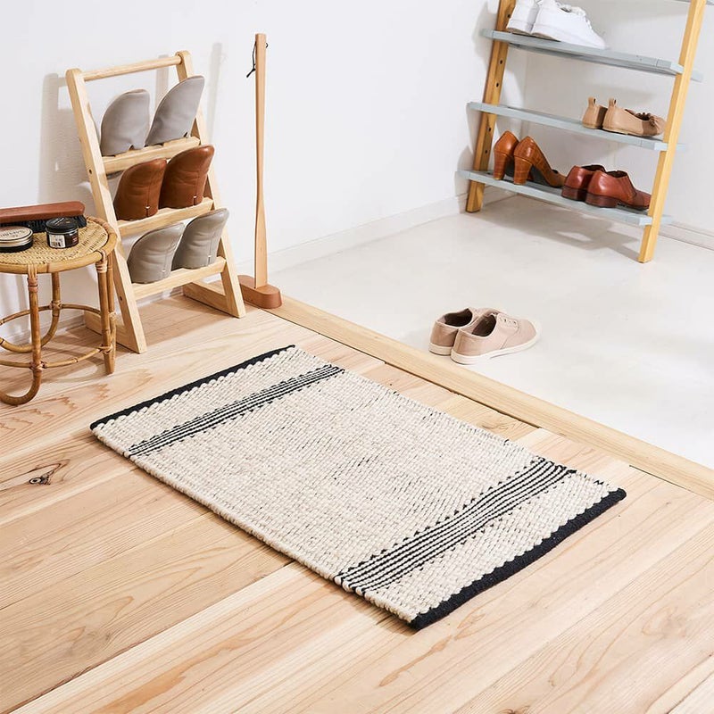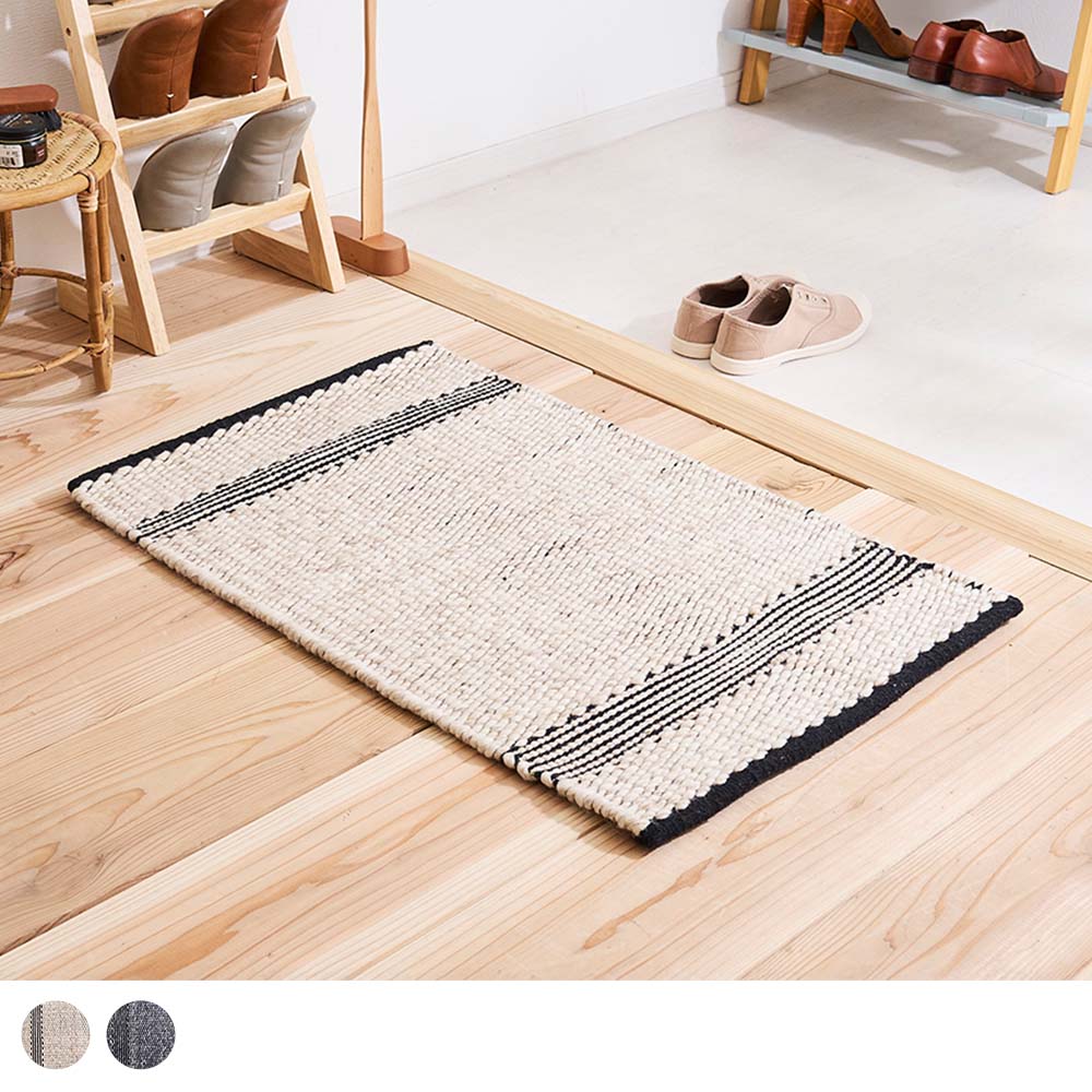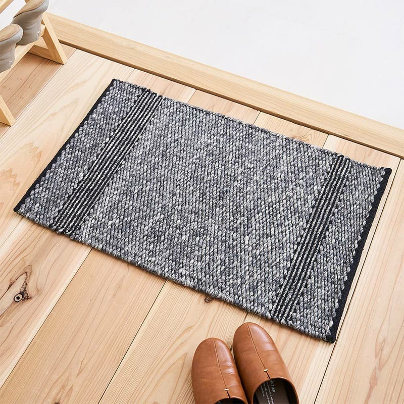 サイドのラインがスタリッシュなウールマット。シンプルなデザインなので北欧インテリアはもちろんどんなインテリアともマッチする万能な1枚です。