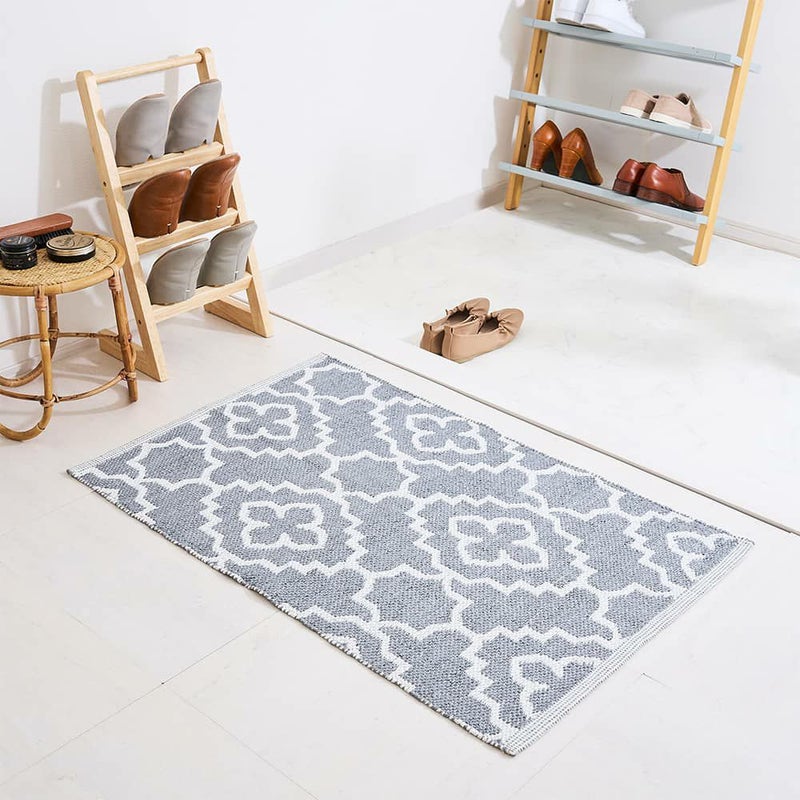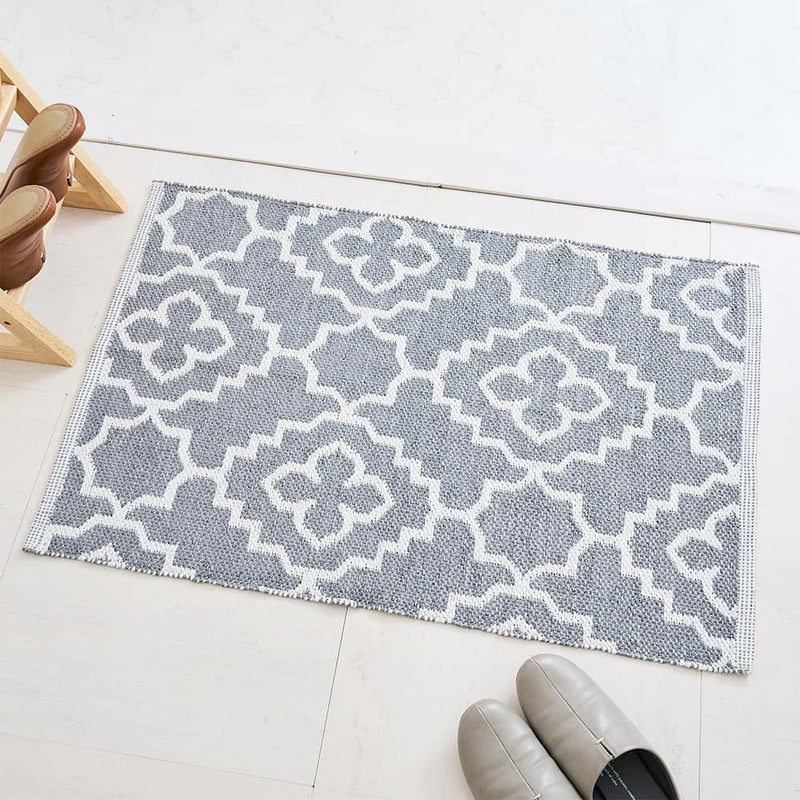 グレーホワイトの上品なカラーでまとめた玄関マットです。淡く優しいトーンが落ち着いた雰囲気を与えてくれるので、「お家の顔」をおしゃれに彩ります。
