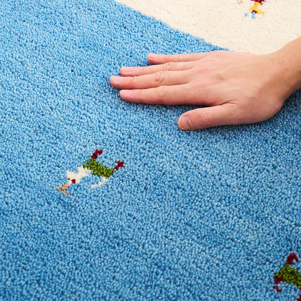 目が詰まった贅沢な織りは、底付き感を感じない、ふかふかもっちりとした弾力のある生地感です。羊の毛は水分と油分を含んでいるので、静電気も起こりにくくほこりを寄せ付けません。