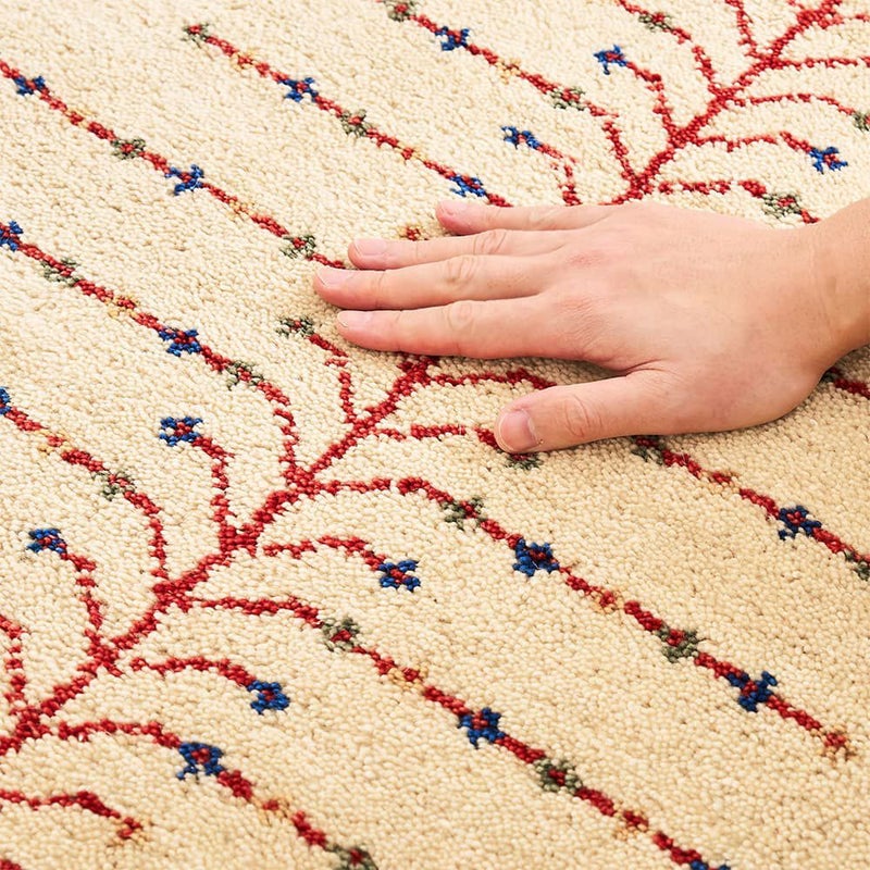 元々遊牧民のテントの中に敷かれ土足で使用されてきた伝統の敷物である「ギャッベ」は、その堅牢さから100年以上長持ちするとも言われてきました。使うほどに柔らかく、味わいのある風合いに育っていく様子もお楽しみください。
