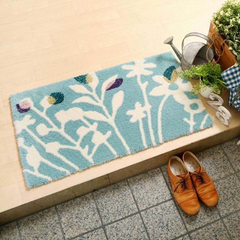 クッカとはフィンランド語で『花』という意味。北欧の独特のノスタルジックなカラーと、一部アクセントに上品な光沢糸を使った、遊び心のあるマットです。